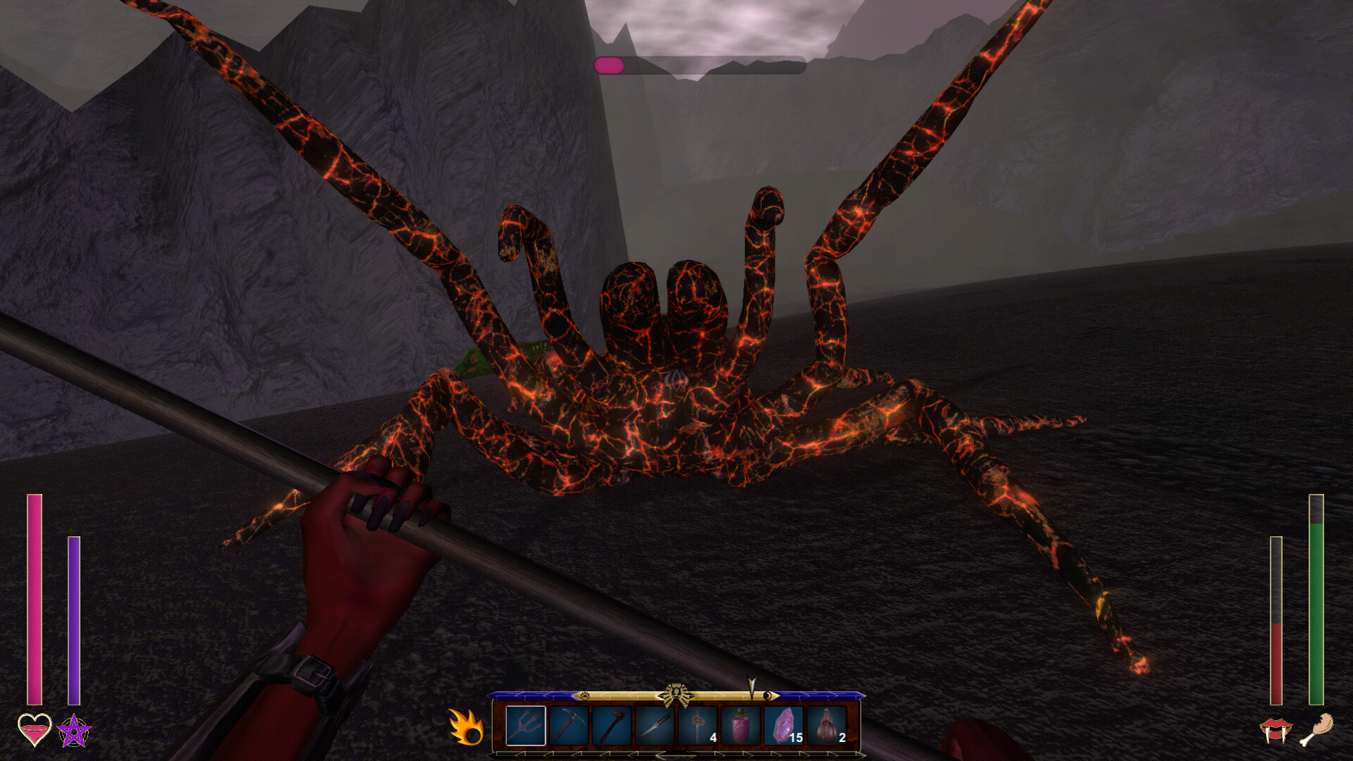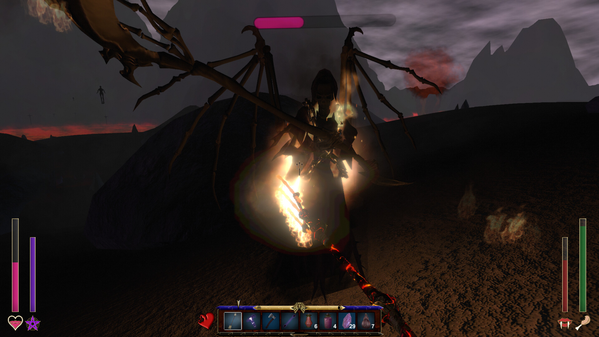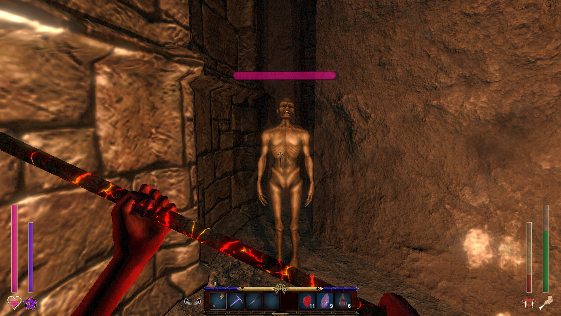 Manage your hunger, blood, and mana to stay alive. Beware the Tormented Souls — near-unkillable predators that haunt the night.