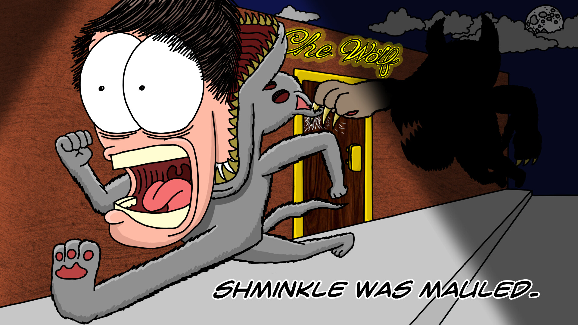 You play as Shminkle, one of only a few humans left after the gruesome wolf invasion. Your mission? To infiltrate wolf speed dating, make wolf small talk and rescue the human they've got trapped in the kitchen before any wolves discover your true identity!