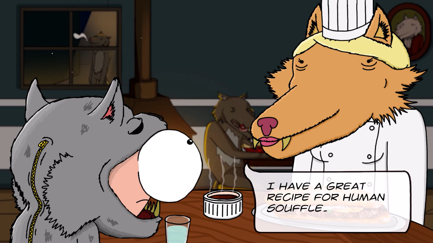 Talk spices with Chef Wolf, drink Mai Tails with Casino Wolf, and lift weights with Swolf. Help Virginia Wolf write her book. Tell Paranoid Wolf that no, humans are not hiding in wolf costumes, he's wrong about that, and he should probably start thinking about moving out of his mother's basement too. And there's a lot more speed dating wolves than that.