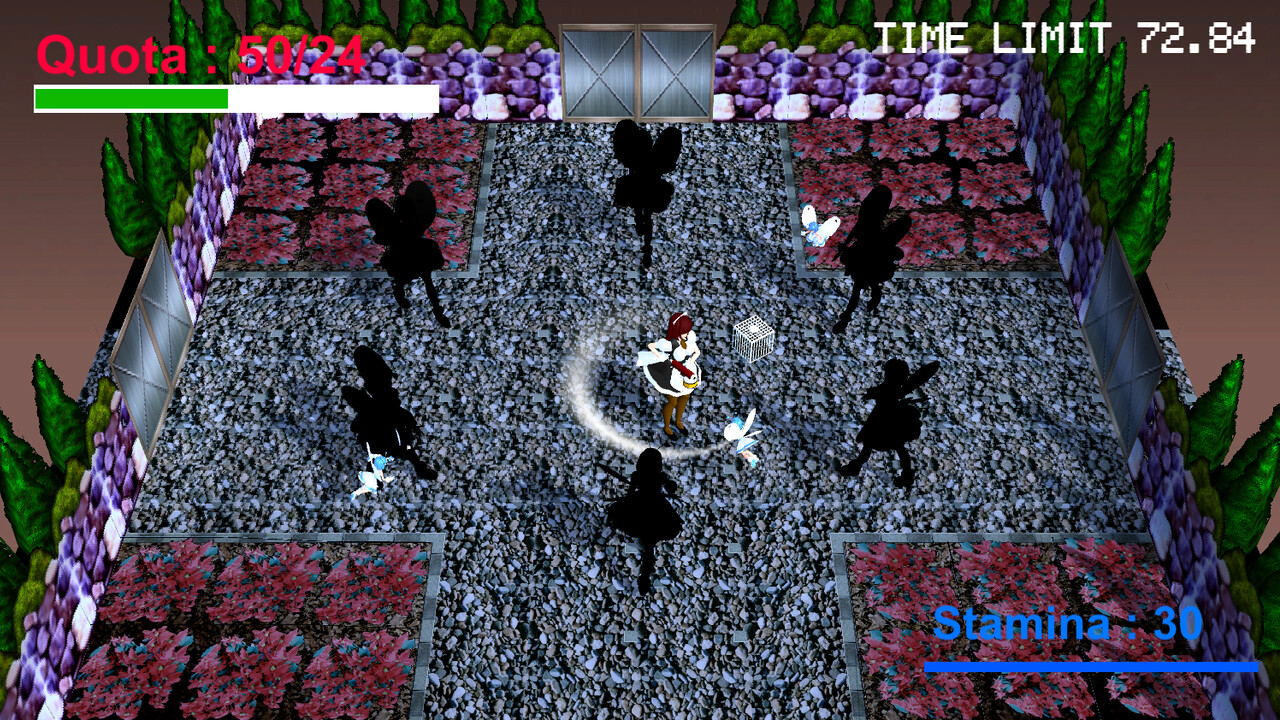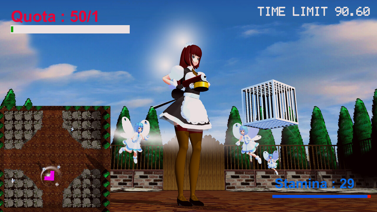 This is an action game where you control a gardener's maid and catch the Insectors flying around the stage in a cage. However, you need to be careful when catching them. It is important to avoid attacks and catch them well in cages. If you clear the stage, you can get an illustration (for adults).