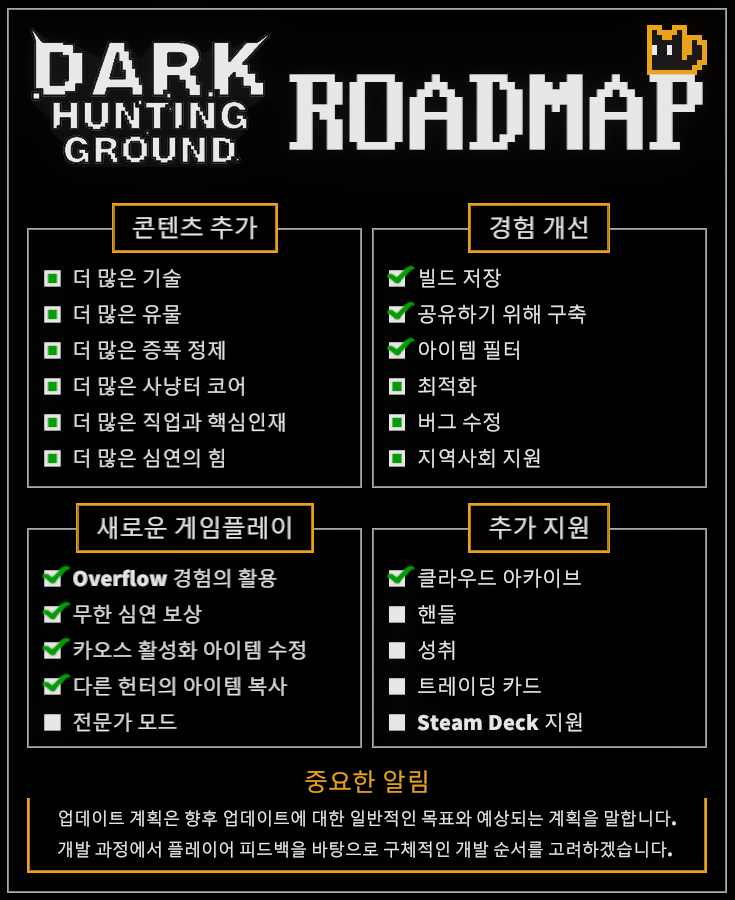 "Dark Hunting Ground"는 전리품 획득을 목적으로 제작된 미니멀 픽셀 RPG입니다.플레이어는 헌터 협회의 신입 회원이 되어 공허에 맞서 싸우기 위해 몬스터를 사냥하고, 공허를 침식하는 근원에 도전할 때까지 전투에서 전리품과 경험치를 얻어 자신을 성장시켜야 합니다.