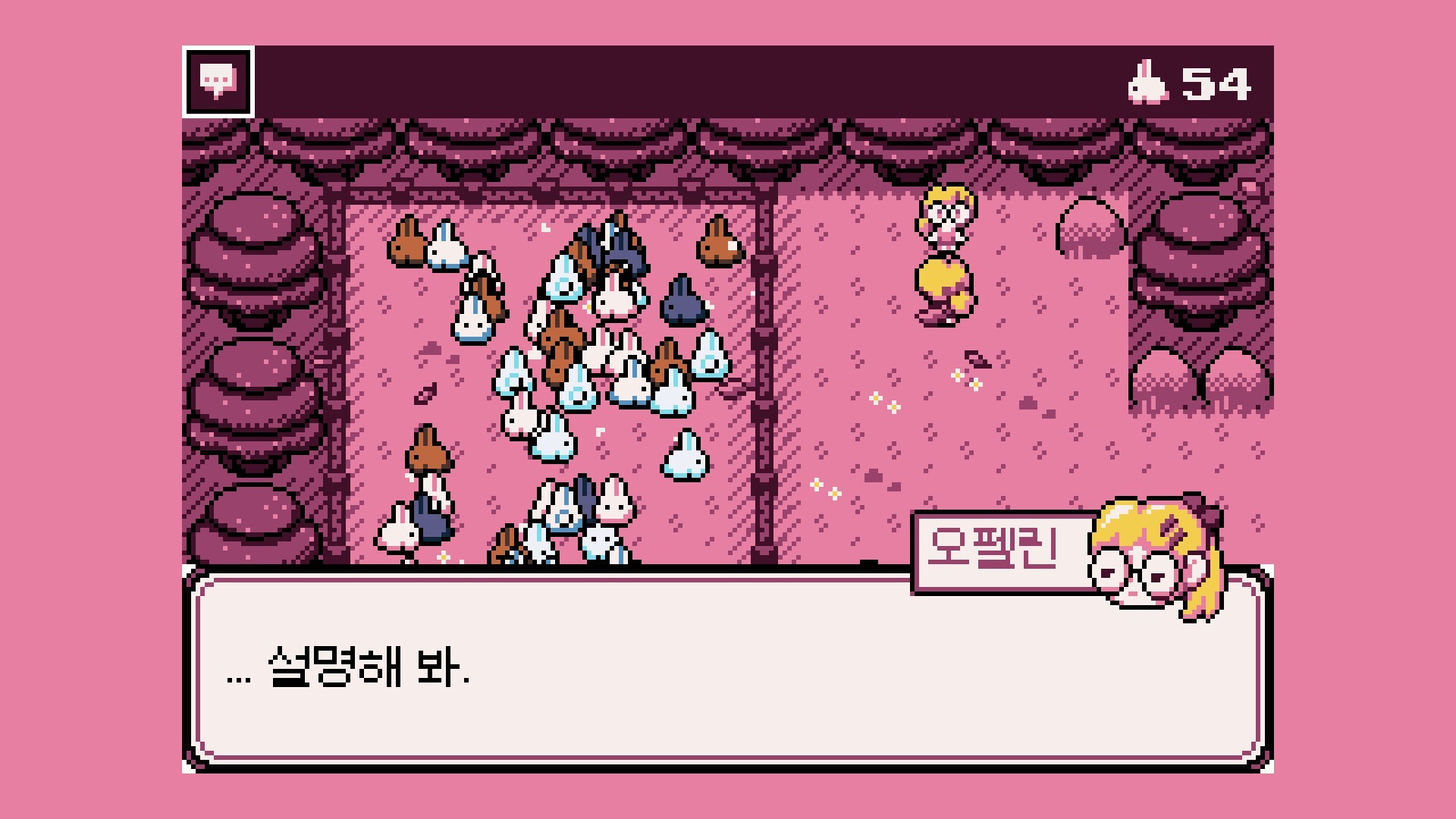 토끼 20마리를 포획하면 상점에서 변장 아이템을 구입할 수 있습니다.메인 스토리 진행 중 특별 대화가 잠금 해제되며, 오펠린 주변에서 변장 아이템을 착용해야 해당 대화가 표시됩니다.