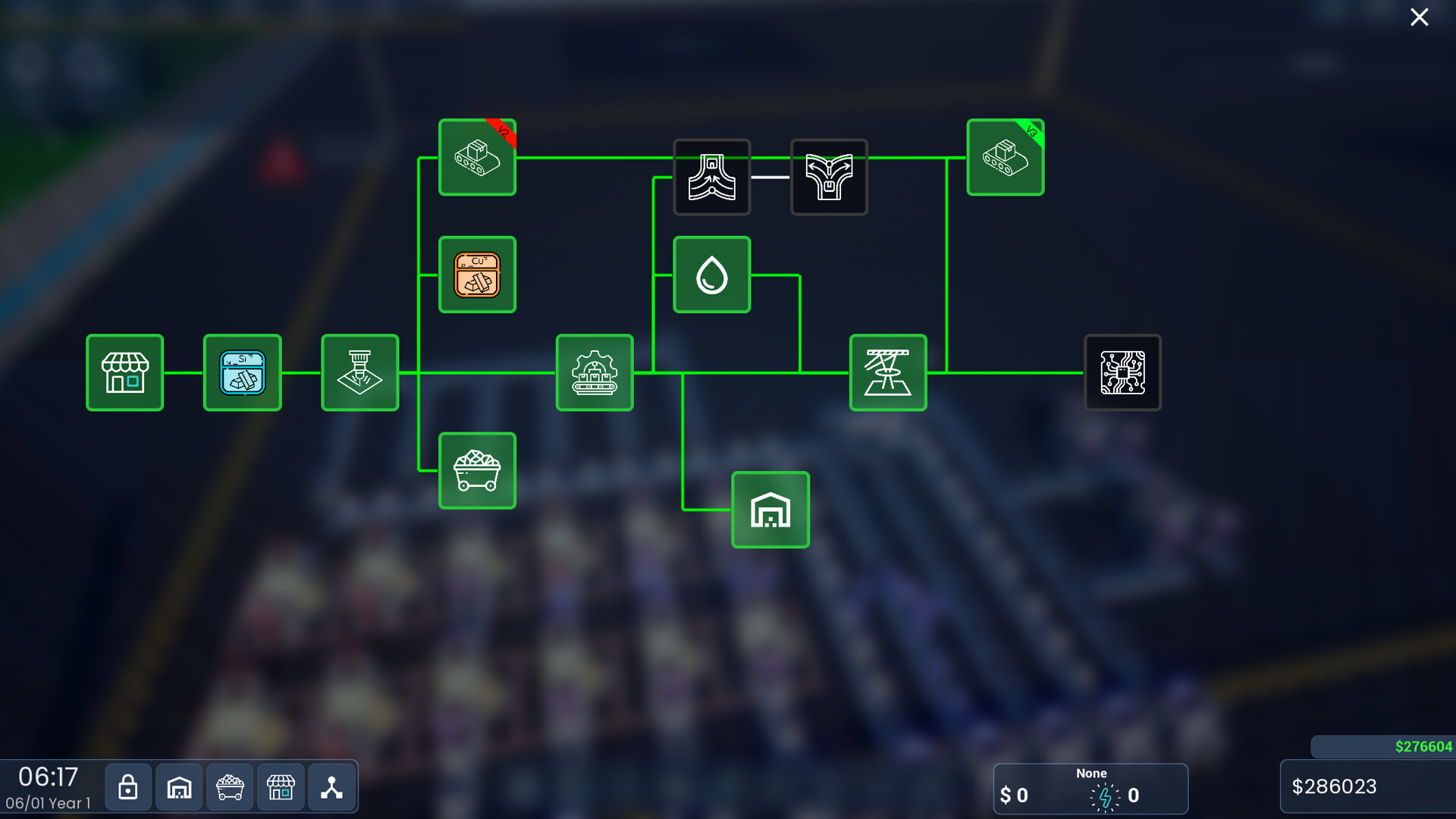 Begin with humble resources and grow your operation into a sprawling industrial powerhouse. Plan every step carefully to transform raw materials into high-value chips.