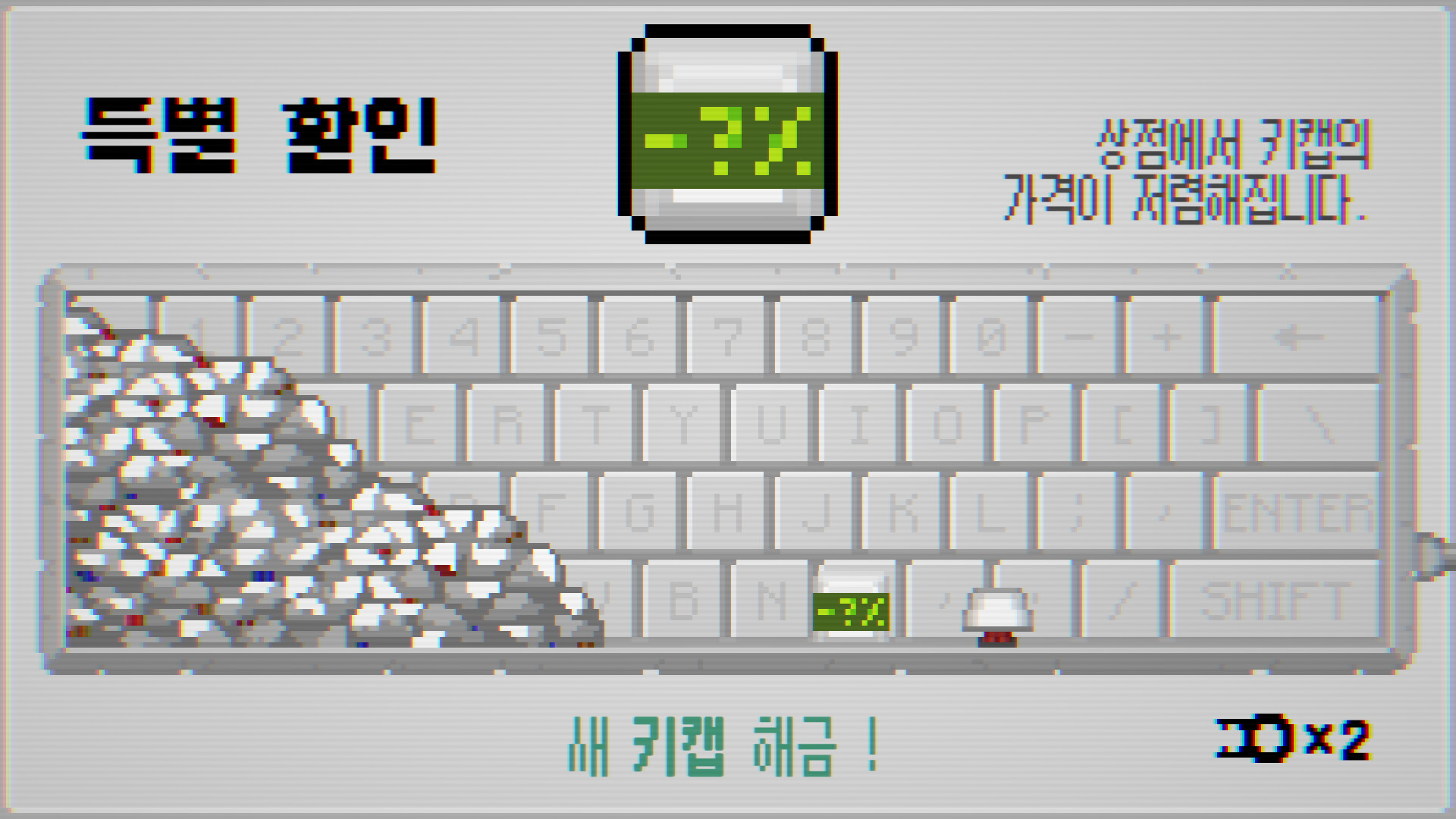 지금 12000원 주고 살 분량은 절대 아닙니다.. 청축이 적축에 비해 너무 오버밸런스고 적축은 공격속도나 데미지가 부족하게 느껴질때가 많네요 특정 키캡들은 너무 오버밸런스고, 특정 키캡들은 왜있는지 모르겠고 스페이스바 누르면 바뀌는 스킬?은 다른거 골랐을때 어떻게 다시 돌리는지 모르겠음.. ? 구역을 가도 상점밖에 안나오는데 상점 들어가면 뭐라도 살때까지는 절대로 못나가고 청축이나 적축도 키캡 뭐 좋은게 없어도 깰만큼 보스의 난이도가 낮아서 굳이 무기지역을 안가고, ?나 상점, 회복지역만 가면서 보스로 달려도 될 난이도 그렇다보니 가뜩이나 불합리한 난이도인데 굳이 무기+ 지역을 갈 이유가 더더욱 사라짐. 결국 한두판 깨고나면 특별함도 사라지고 더 할 이유가 잘 안느껴지게 되는 것 같아요 참신함으론 진짜 좋은거 같은데 더 재밌는 게임이 될 수 있을 것 같은데 아쉽네요 지금 정가주고 살 게임은 아닌 것 같습니다. 하지만 도트나 게임 시스템, 참신함은 진짜 멋있다고 생각해요! 앞으로의 패치를 응원하겠습니다.