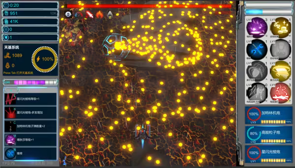 This is a science-fiction bullet-screen shooting game that tells the story of humans battling mysterious mechs. The game provides construction, tower defense, barrage shooting in one game experience. The game is based on six reactions generated by four element attachments (quantum attachments), providing a combination of more than 30 fighter skills, more than 40 space-based turrets, and more than 10 enhancement modules. The game provides puzzle solving factors on the basis of STG, you can choose small gameplay faster to kill the enemy, you can also use powerful firepower brainless kill, you can also build powerful space-based turrets to experience the comfort of tower defense, you can also use the shells provided by the construction system to provide strong fire support.