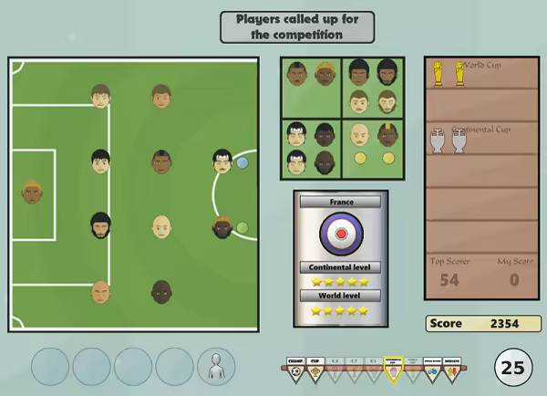 경력 동안 국가 대표팀 감독은 항상 당신을 주시하게 될 것입니다! 연도별로 귀하의 실력이 국제적인 대회인 대륙 대회나 전설적인 월드컵에 출전할 수 있는 수준임을 입증하세요!