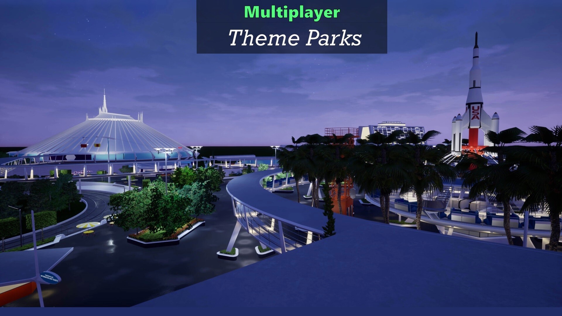 Multiplayer amusement parks with rideable steel and wooden coasters, plus rideable flat rides.