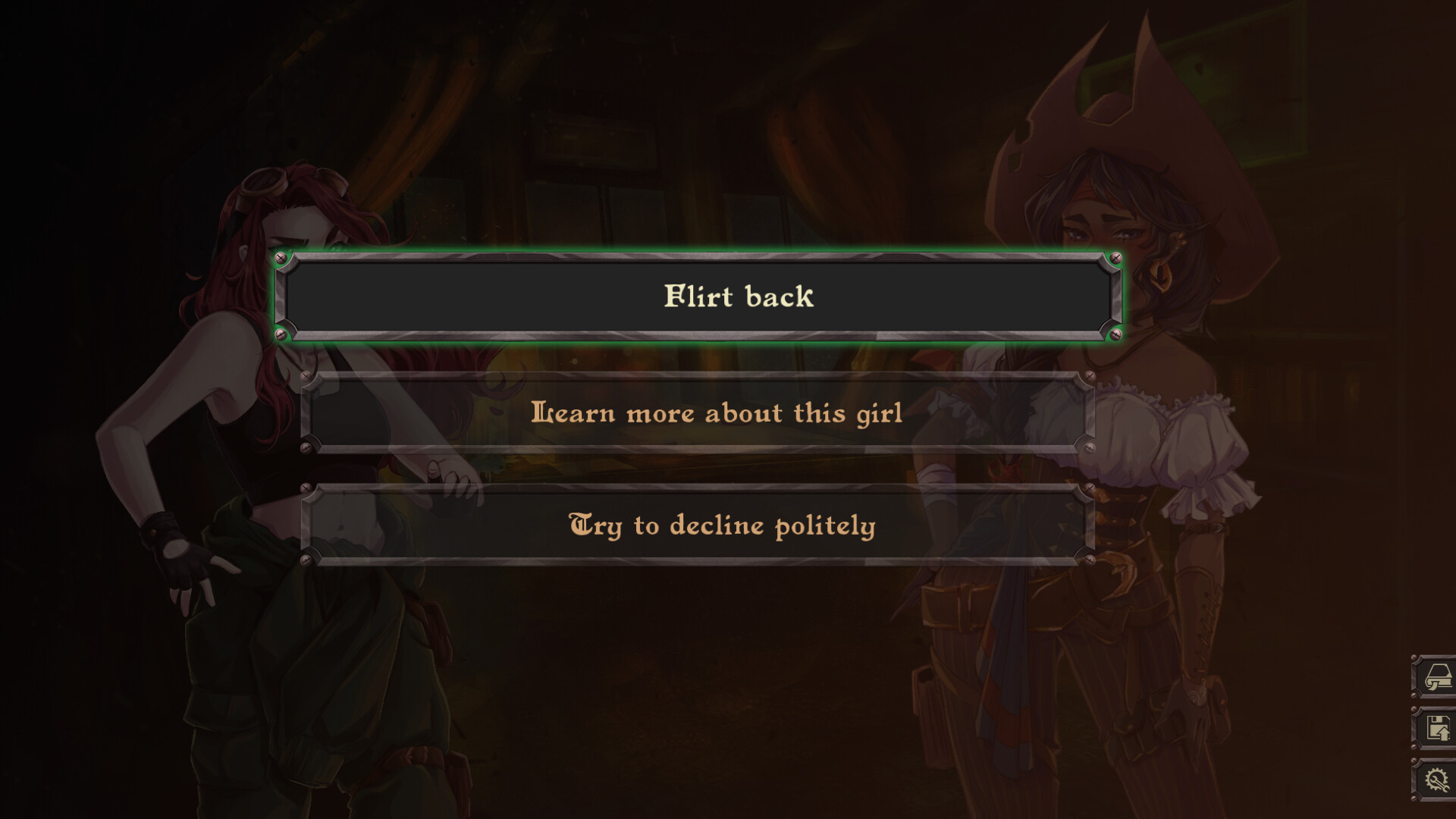 If you wish, you can enter into romantic relationships with any of the four male and female companions who cross your path. You can also opt for sincere friendships if you prefer. Romance is not a requirement for a successful adventure. The choice is yours.