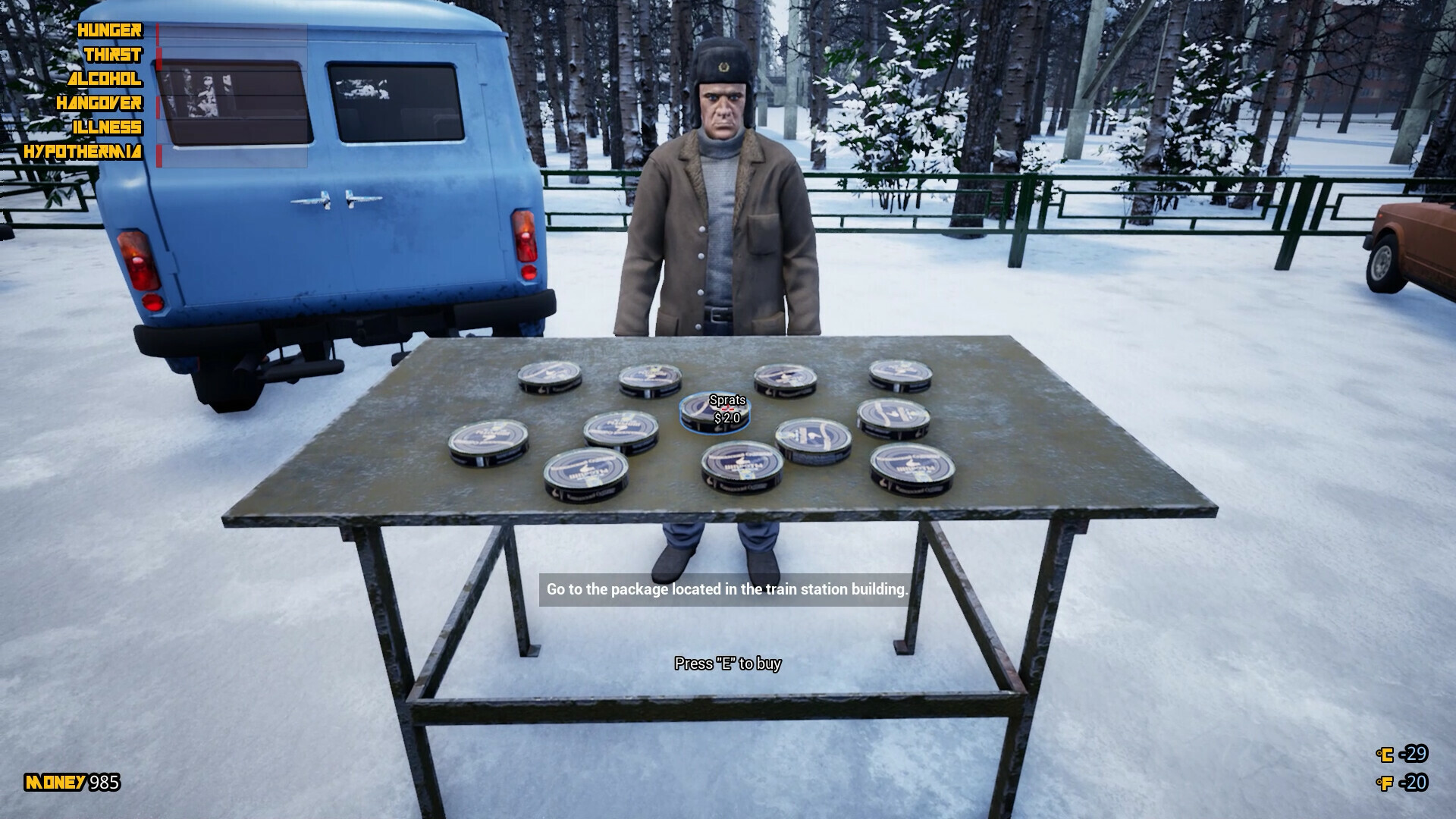 - Purchase and sales system - Buy various items, food, tools, weapons and ammunition.