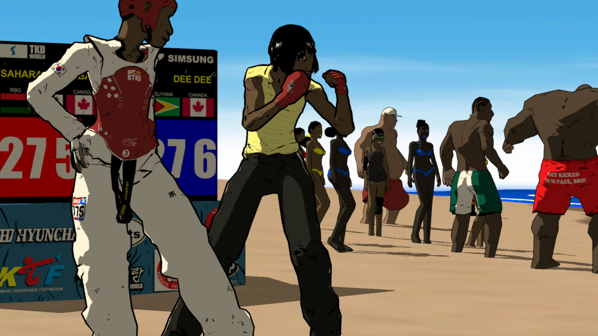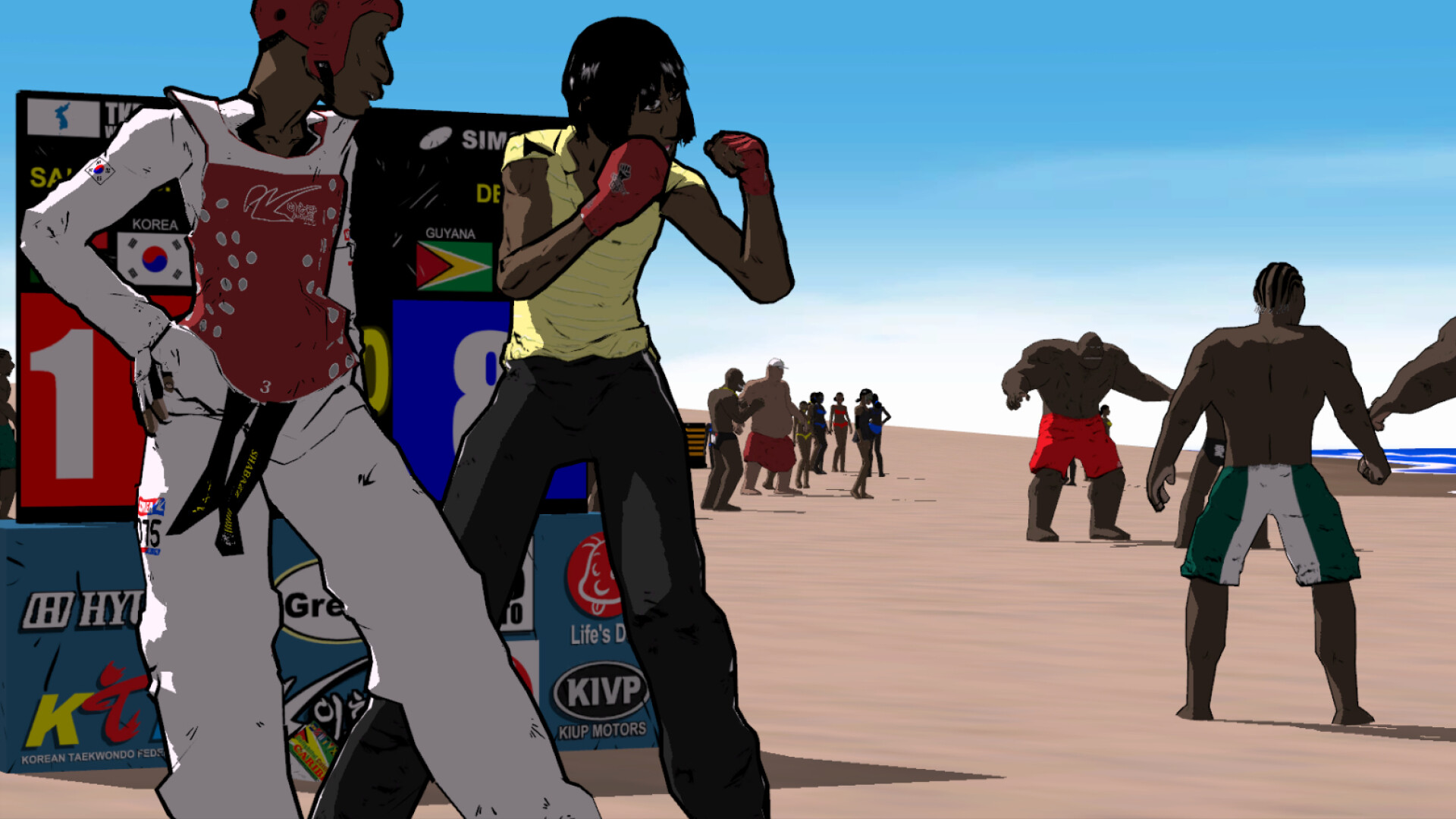 사하라 B. 샤바즈와 함께 태권도가 그녀의 혈관 속에서 흐르고 있는 그 한국 남자의 희생을 기리며 이 무술 대회에서 우승하세요.