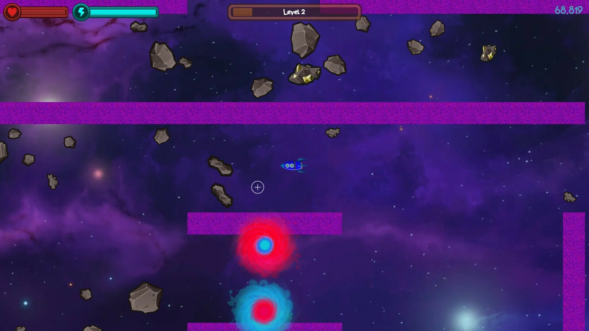 - 소행성과 적 우주선을 격추하여 자원(철, 금, 백금, 흑요석)을 획득하세요.