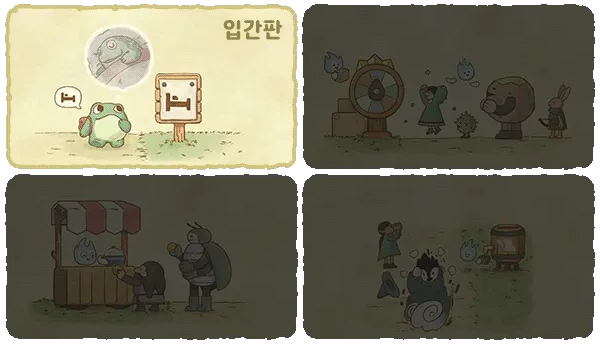 손님은 많을수록 좋겠죠? 입간판, 가판대, 에너지 음료, 돌림판 등 다양한 시설물들을 적재적소에 배치한다면 더 많은 모험가들의 마음을 사로잡을 수 있을 거에요. 하지만 두 길드가 서로 앙숙이기에, 서로 다른 길드에 속한 모험가들이 여관 앞에서 가능한 한 마주치지 않도록, 여관으로 다가오는 타이밍을 잘 조절해야 해요.