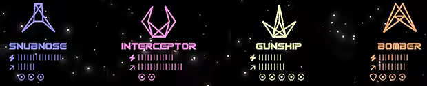 Select a colour & choose your starfighter before jumping into battle! Will you choose the balletic SNUBNOSE fighter to dance circles around your enemies, the precise & deadly INTERCEPTOR, the fully-loaded GUNSHIP or the prototype shielded BOMBER?
