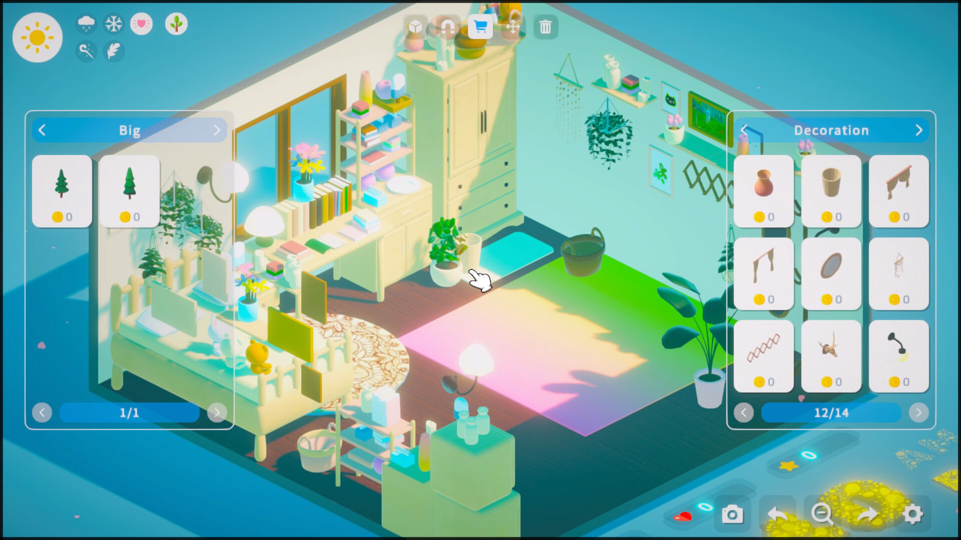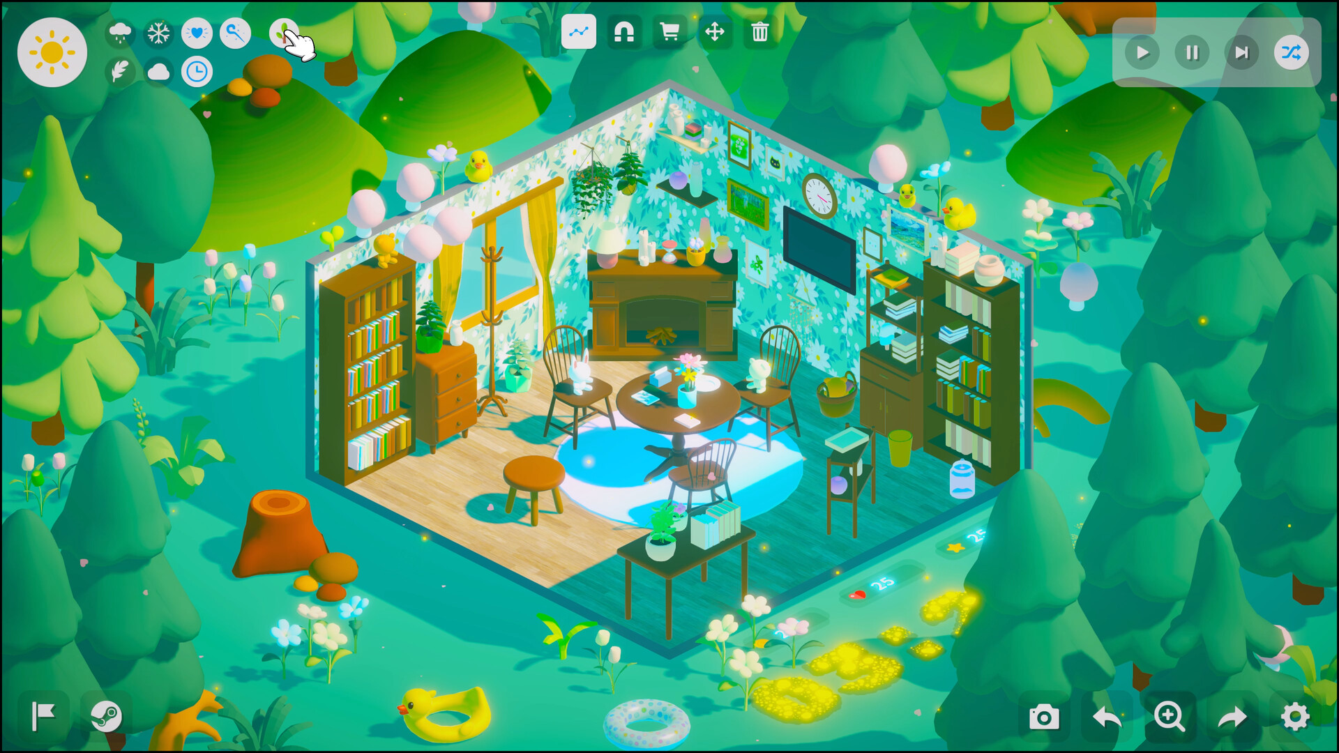 The game offers a large number of plants such as flowers and trees that you can choose and place to make your outdoor scenes come alive. Feel the plants grow under your care and experience the picturesque beauty of the different seasons. Try interacting with different plants, perhaps the plants will surprise you! And try to build your own ecosystem, maybe it will attract small guests to visit!