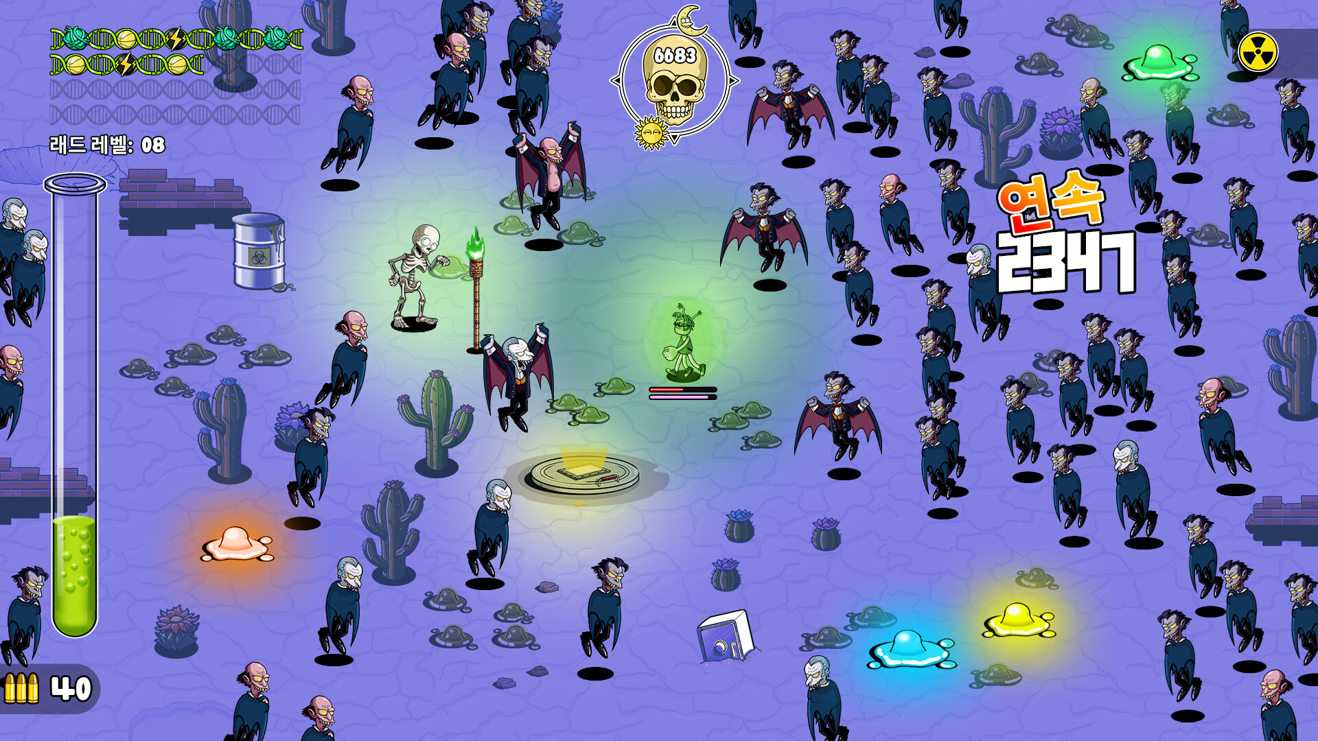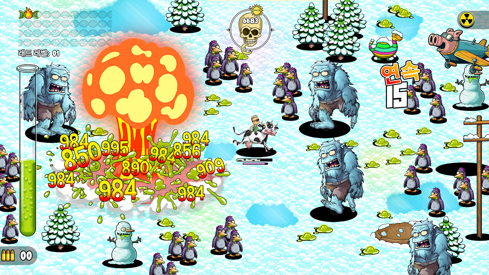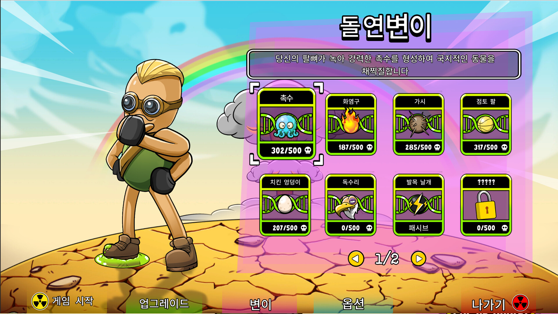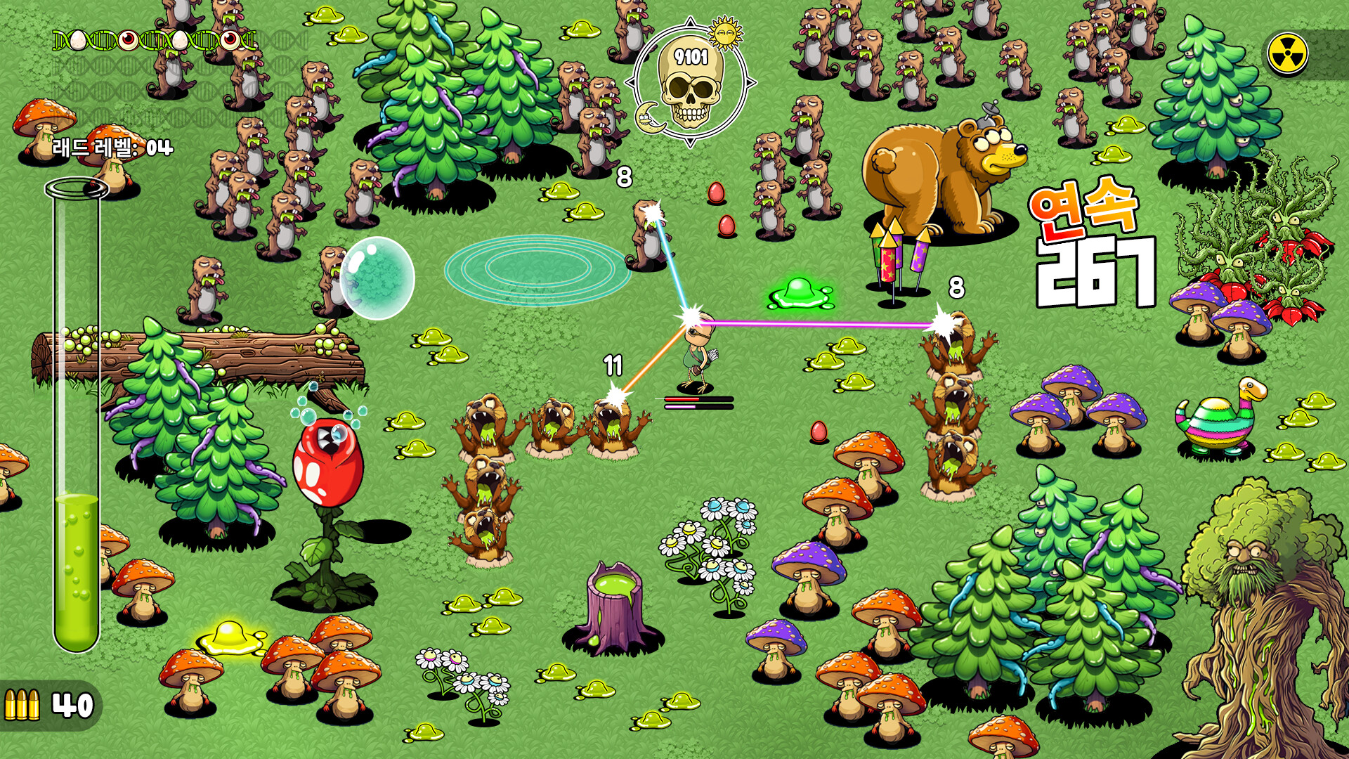화면을 가득 채운 돌연변이 야생 동물 무리를 파괴하고, 그들의 방사능 내장을 흡수하여 황무지의 최강 괴물이 되어라!
