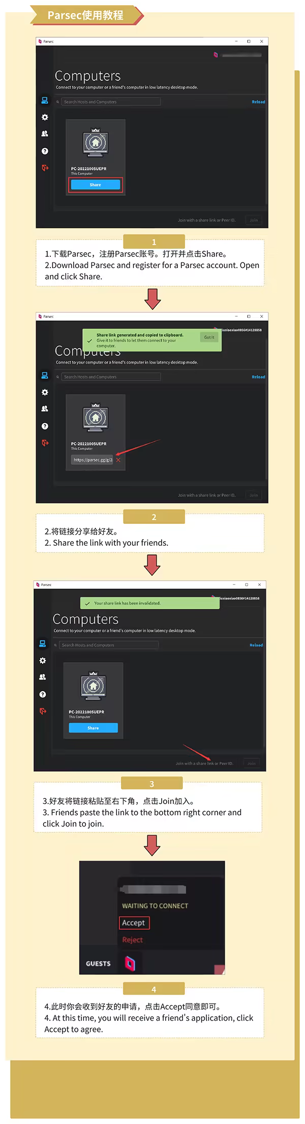 The game supports steam REMOTE PLAY, but if the lag delay is severe when using REMOTE PLAY, it is recommended to use third-party software online, such as Parsec.