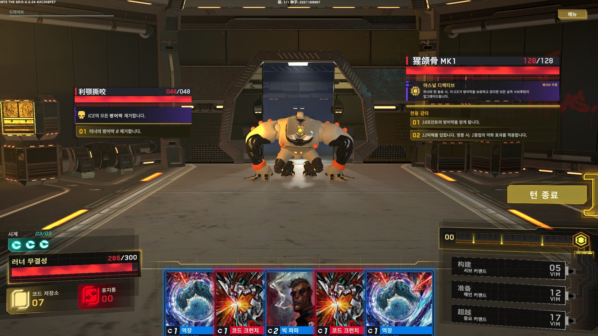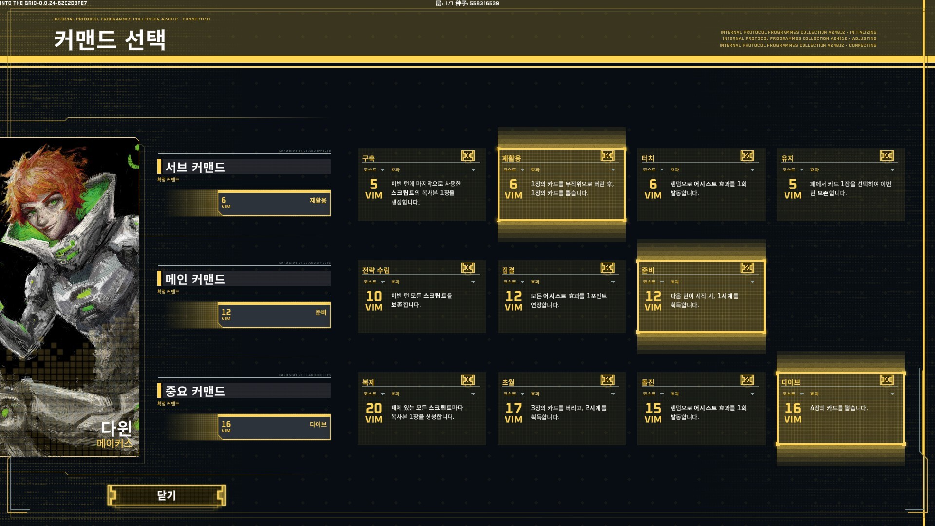 저희는 각 카드가 효과를 발휘할 때 가상 메모리(VIM)를 생성하는 특유의 이중 자원 시스템을 고안하여 플레이어가 최악의 패를 쥐었을 때에도 활용할 수 있도록 만들었습니다. 전투 중에 가상 메모리(VIM)를 사용하여 명령어를 활성화하고 적들의 방어를 무력화하세요!