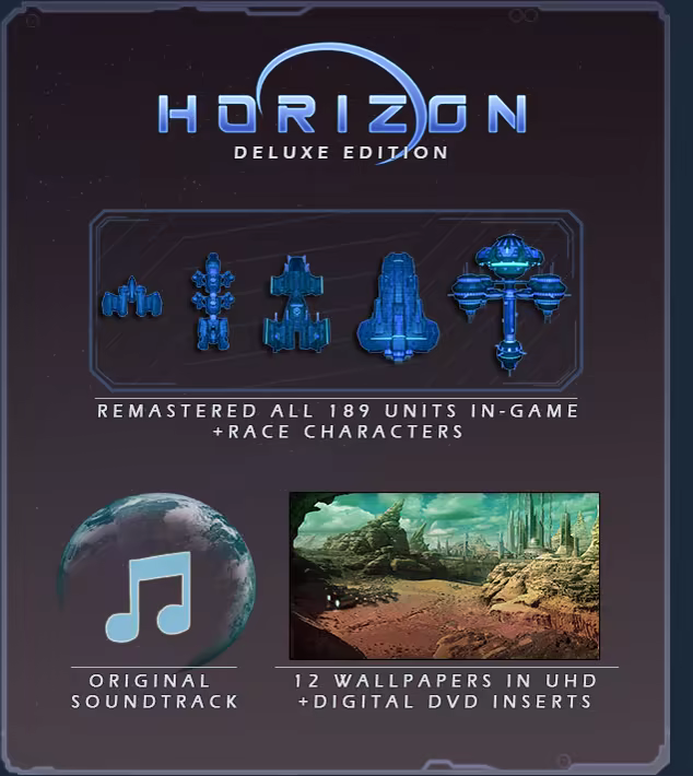 The Horizon Original Soundtrack delivers over 30 minutes of original music composed by Dustin Crenna, including bonus tracks and alternate versions not included in the game.Wallpapers