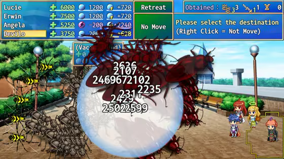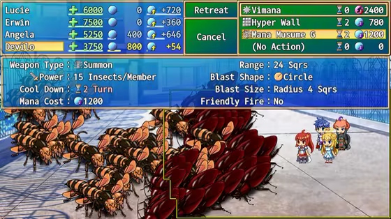 Use weapons and magics that consume more than player characters' maximum Mana, bring them into the "Emergency Charge" state, recover Mana at ultra-high speed, and then blast the swarm of giant monsters (insects) on your next turn!