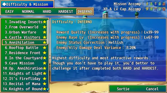 Of course, the game also has high difficulty settings such as HARDEST and INFERNO, which are intended for experienced players. (The "weapons" and "armors" obtained as rewards are also powerful)