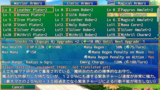 Mana (so-called MP) regeneration and "Emergency Charge" are important in this game. This is a casual turn-based tactical RPG (often called "SRPG" = simulation RPG in Japan) with a focus on exhilaration and hack-and-slash system.