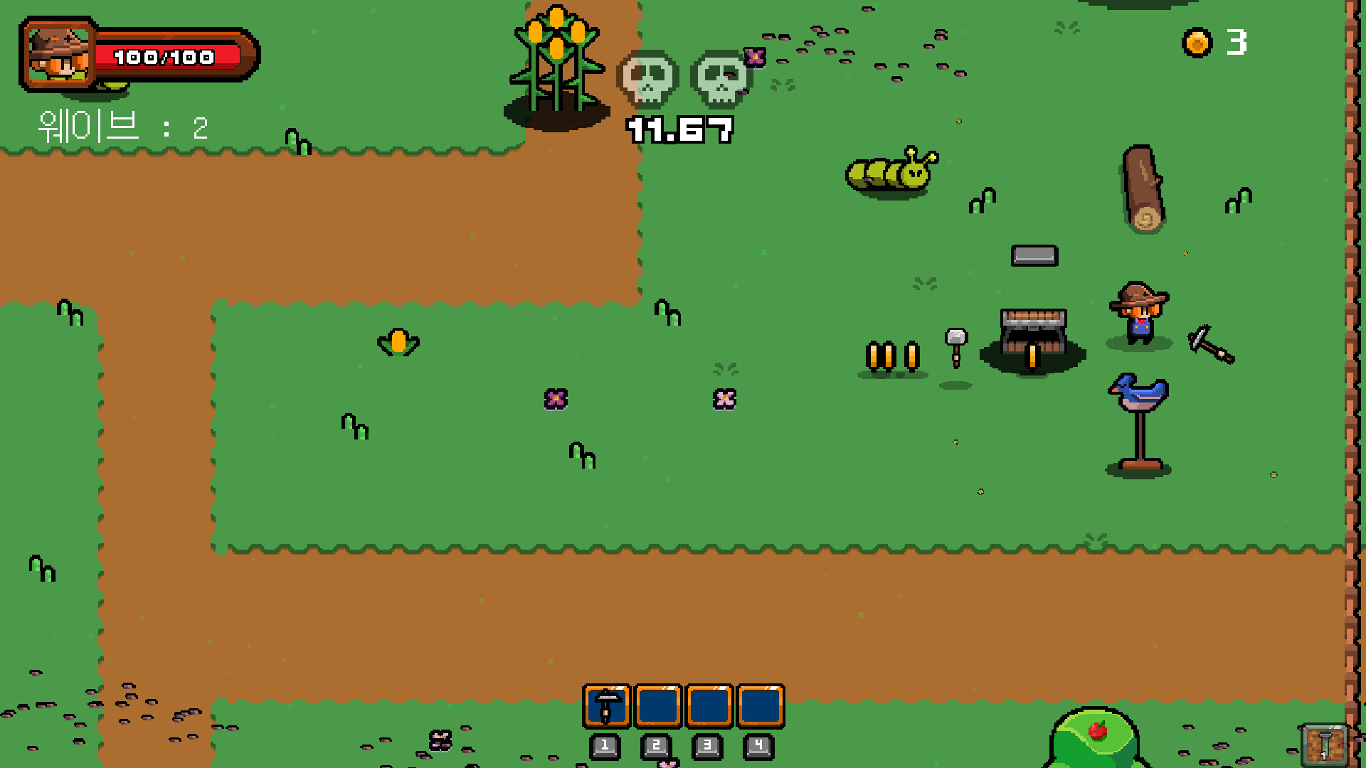 풍작을 앞둔 농장에 갑작스레 대규모 해충 떼가 침입했습니다. 굶주린 해충 무리가 당신의 농장으로 몰려오고 있어요. 당신은 마을 사람들의 마지막 희망입니다. 호미를 들고 (물론 다른 무기들도 있습니다) 이 해충들에 대항하는 방어전에 참여하세요!