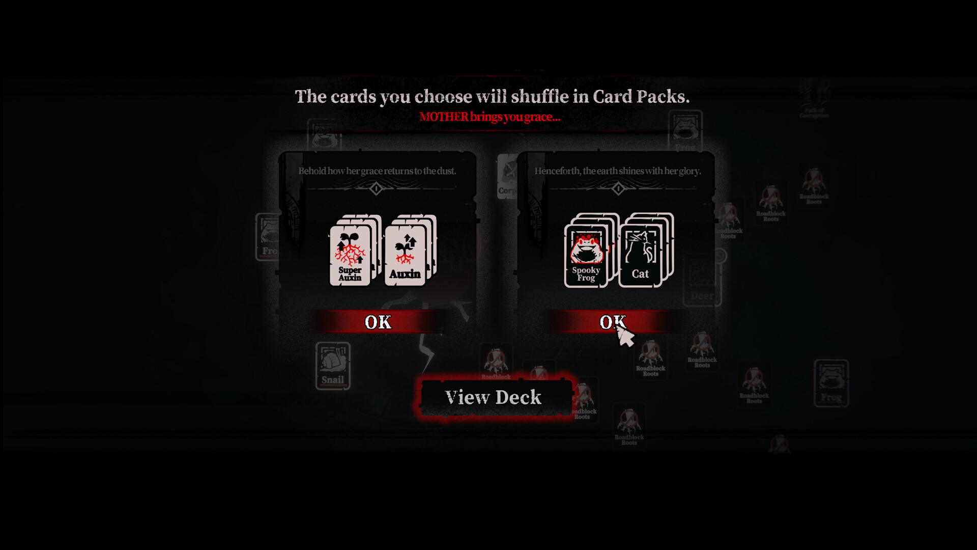 Witness the might of the gods! Link the cards and weave blood passages with the roots.