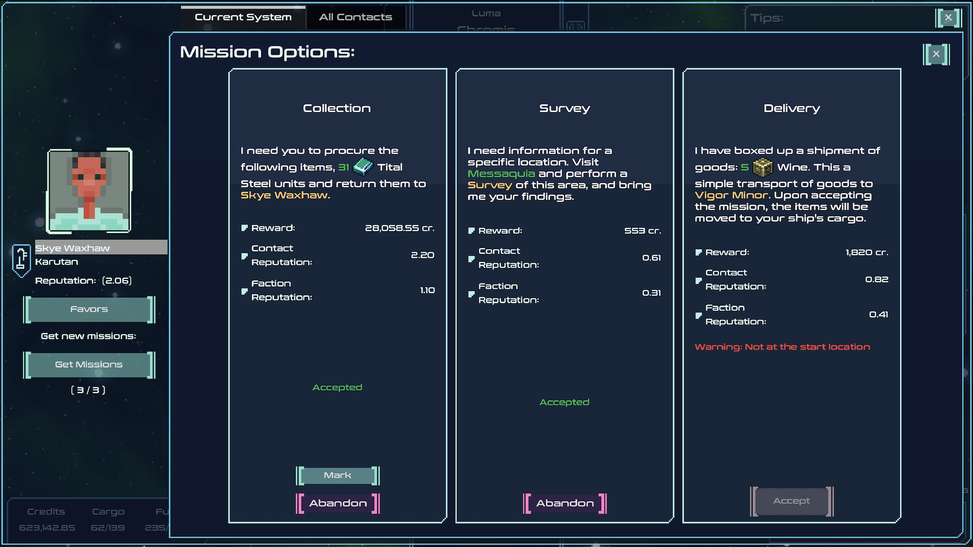 평판 중요성: 당신의 행동은 다양한 파벌과의 평판을 형성하며, 이는 수익성 있는 거래, 계약 및 은하계에서의 안전에 영향을 미칩니다.