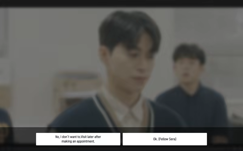 2. 각 분기점마다 떠오르는 버튼을 통해서 인물의 행동 혹은 대답을 선택하세요.
