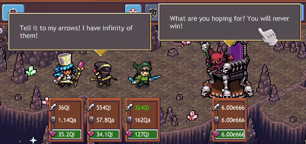 Unlock new buildings, hire workers, veterans and archmages and watch your heroes' stats grow. Perform Dark Rituals, idle to accumulate resources, build more buildings and watch as previously invincible enemies are defeated in one blow.