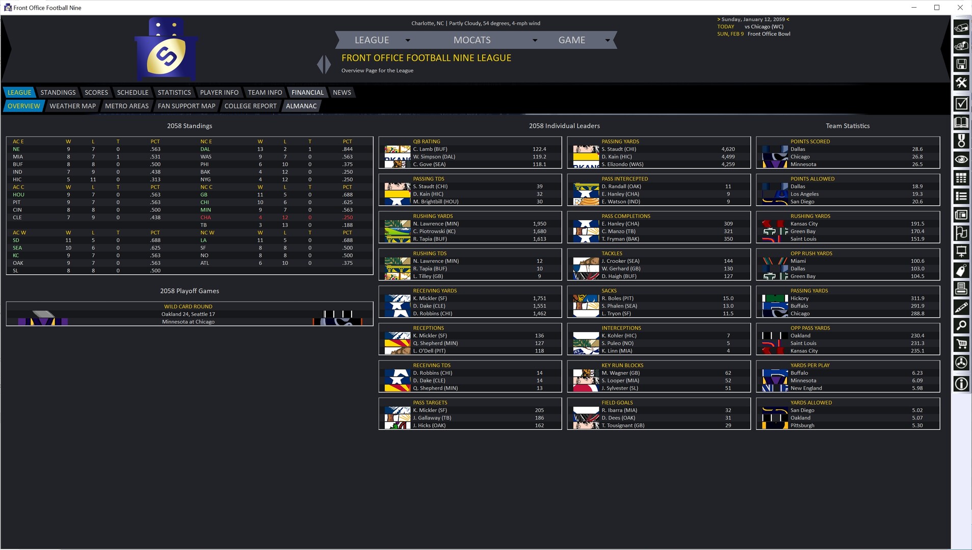 Team and League Overview screens. Among nearly 200 screens in Front Office Football Nine are the new Team Overview and League Overview screens, which act as front pages for your universe.