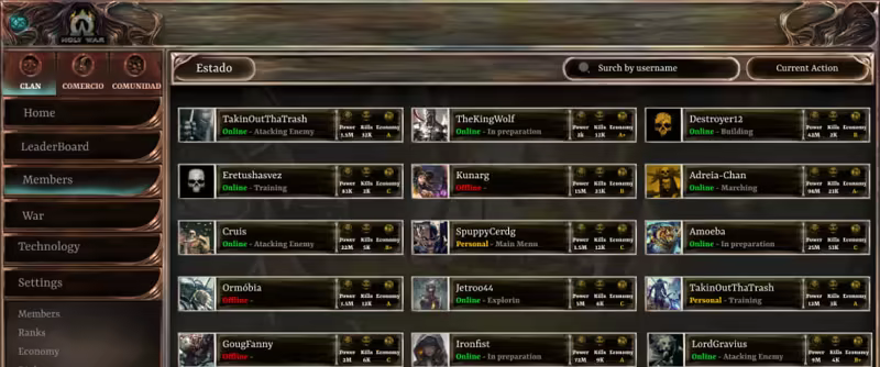 - 다른 클랜, 지역 또는 플레이어에게 전쟁을 선포하십시오.