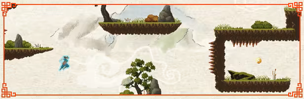 윤의 점프 능력은 다른 플랫폼 게임과는 상당히 다릅니다. 영혼이 부족하기 때문에 윤의 점프는 천장이나 벽에 부딪히거나 다시 점프를 누르기 전까지 추진력과 방향을 유지합니다.천장이나 벽에: