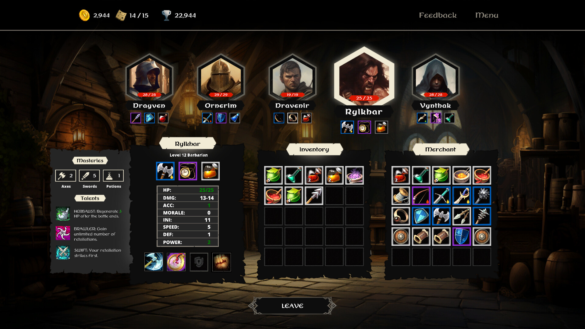 - Manage your squad and inventory to prepare for upcoming battles or random events on your adventure.