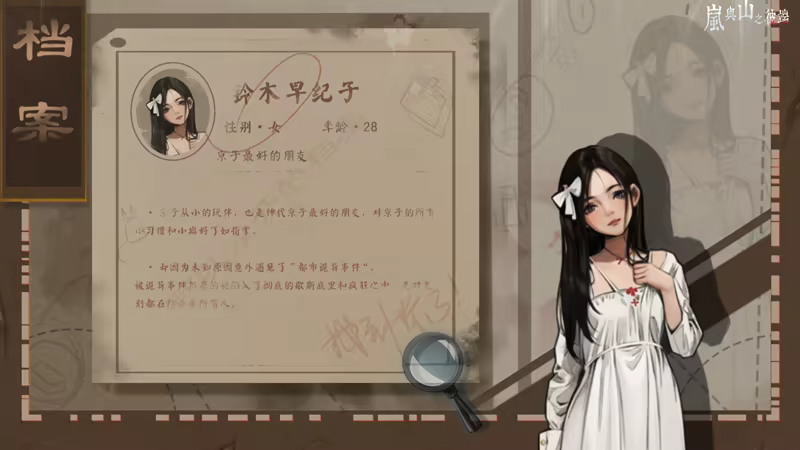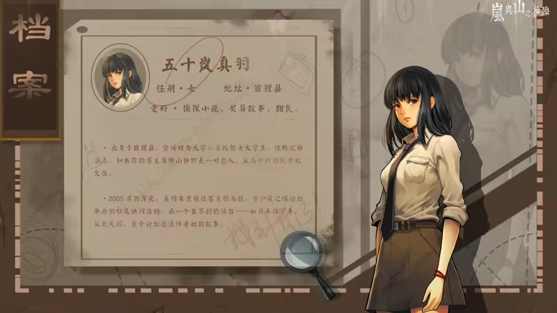"Beyond the Mist and Mountains" is a Japanese-style horror mystery puzzle-solving game, including puzzle-solving, hiding, chasing, visual novels and other gameplay; the game takes the plot as its core to present a series of mysterious yet touching stories. The currently open trial chapter tells about five years ago when a sophomore student named Mayu Igarashi took a midnight train to So-Kyo City to attend a social flash activity organized by an obscure supernatural forum. She disappeared after getting off at a station called "Kisaragi Platform", which has since vanished. Shizuno Yokoyama has never given up looking for her girlfriend Mayu. He opened a detective agency in his hometown specializing in "bizarre tasks", just searching for clues about Mayu's whereabouts. As his investigation deepened, he found himself increasingly entangled in this fog...