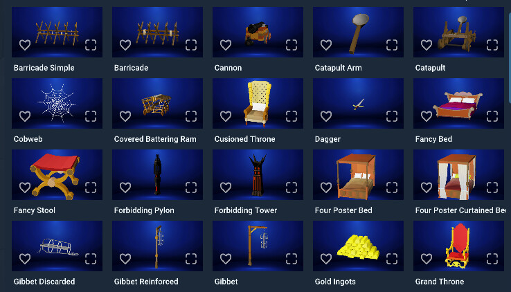 Dozens of Constructions, Furnishings and Accessories Including Siege Weapons, Walls and Defences, Chairs, Beds and Tables!
