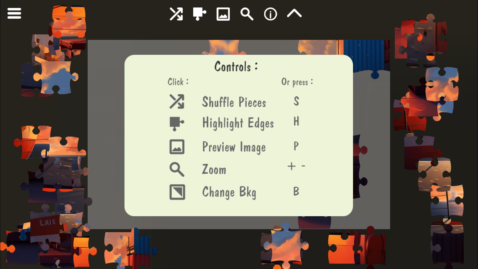 - Complete 6 Jigsaw Puzzle scenes at 5 levels of dificulty.