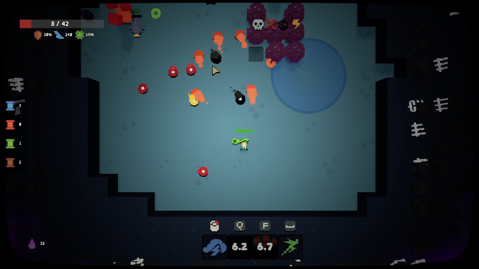엘리멘텀은 총알 지옥의 요소를 갖춘 주문 제작 로그라이크입니다.