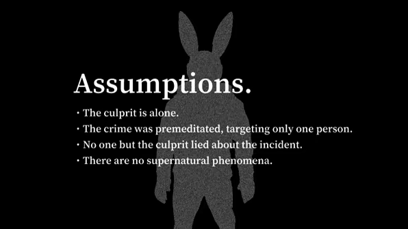Once the materials to derive the culprit are available, the name of the culprit can be specified. The game is cleared if the only person capable of committing the crime can be proven.