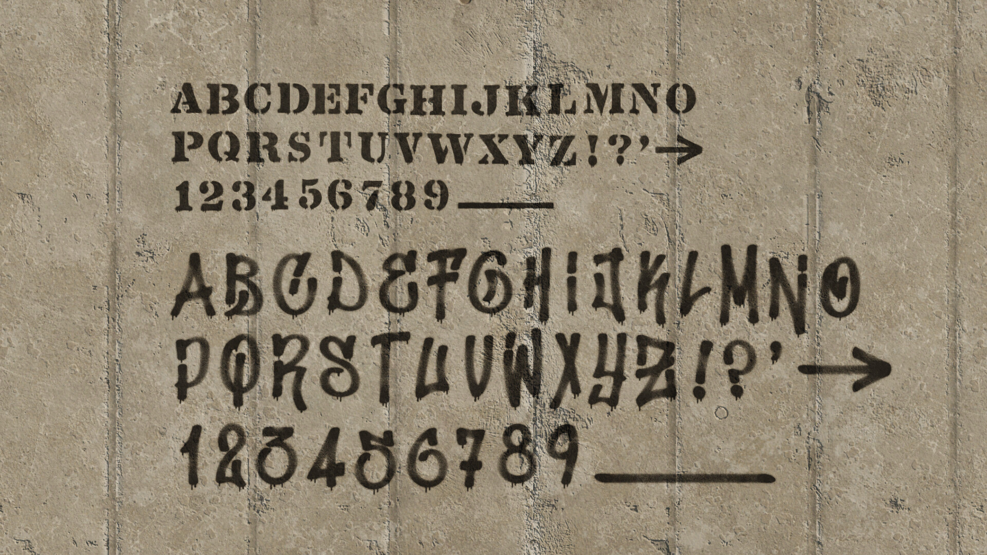 This pack, our 3rd collaboration with talented artist Melburnian, is Ideal for a wide range of games from post apocalyptic, through modern day and into the dystopian and cyberpunk genres. The pack contains 4 complete stylized alphabets and an additional stenciled alphabet, all complete with punctuation and numeric symbols.