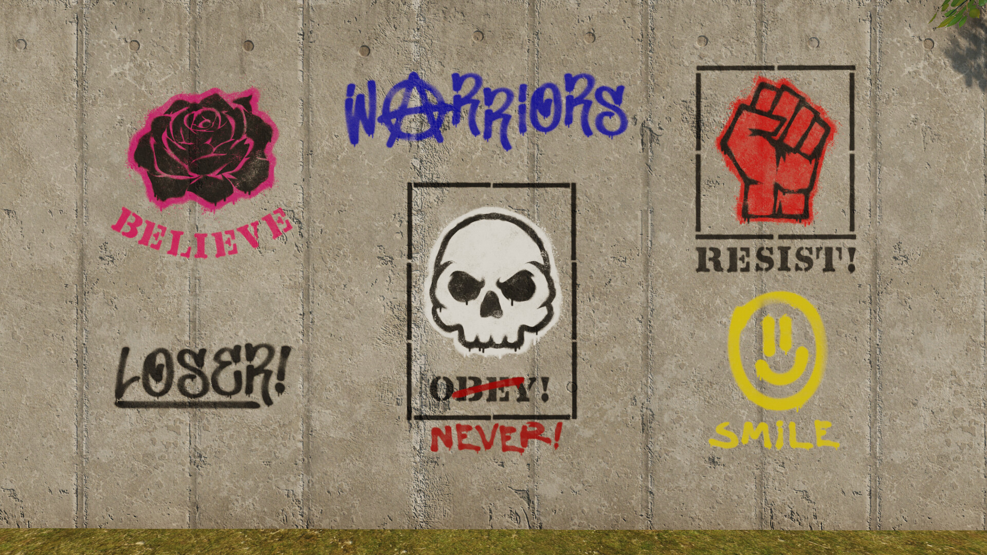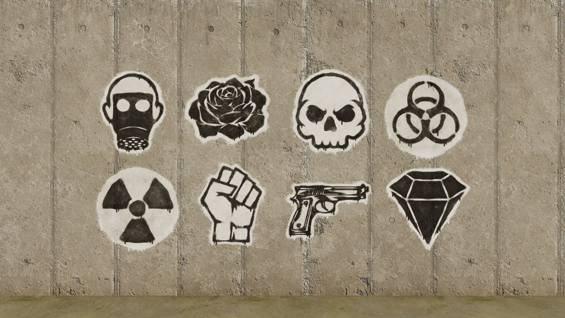 As well as the above, you'll find 16 spray paint styled symbols, ranging from bio hazard through to resistance signs - perfect for adding extra detail.