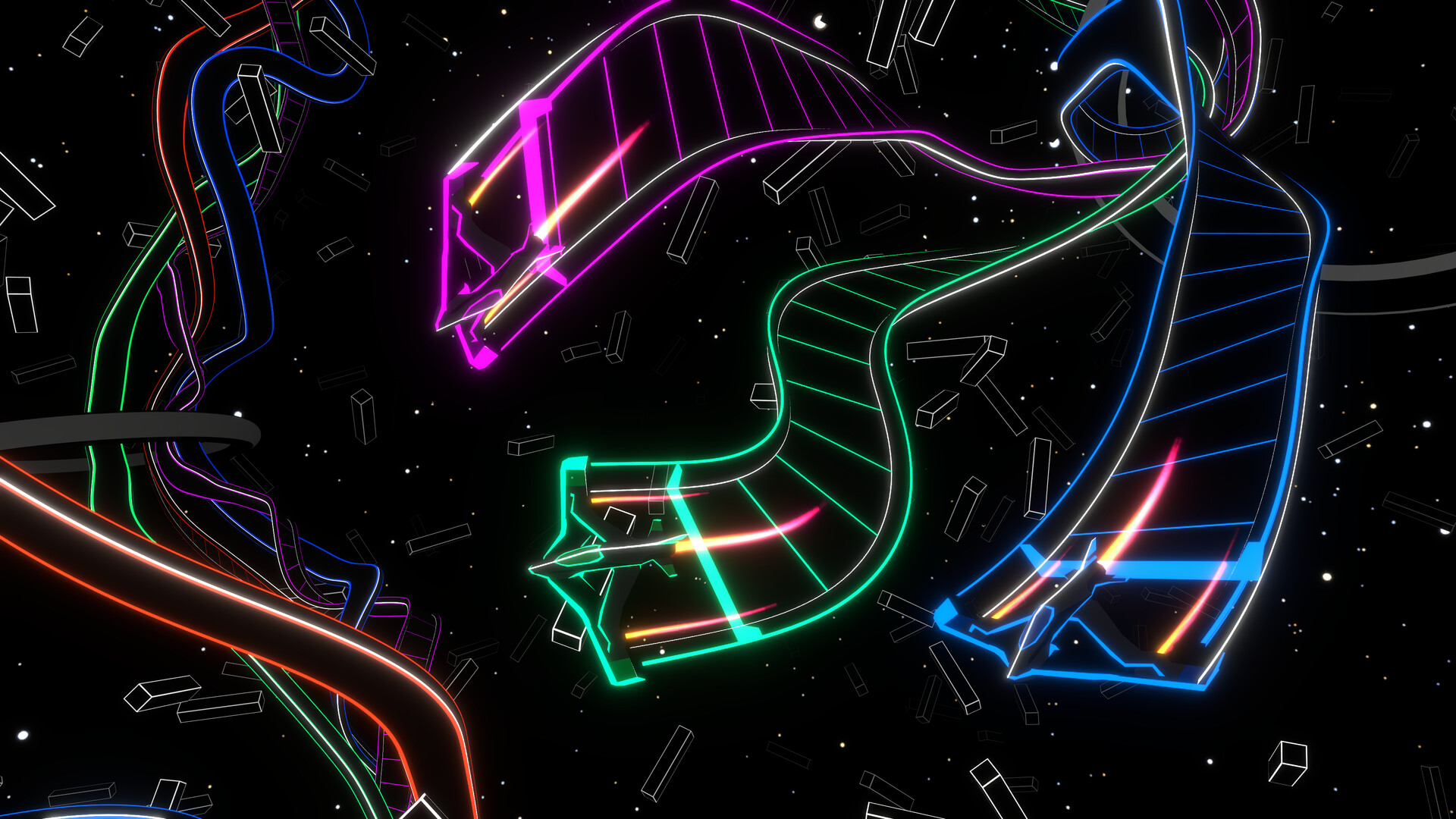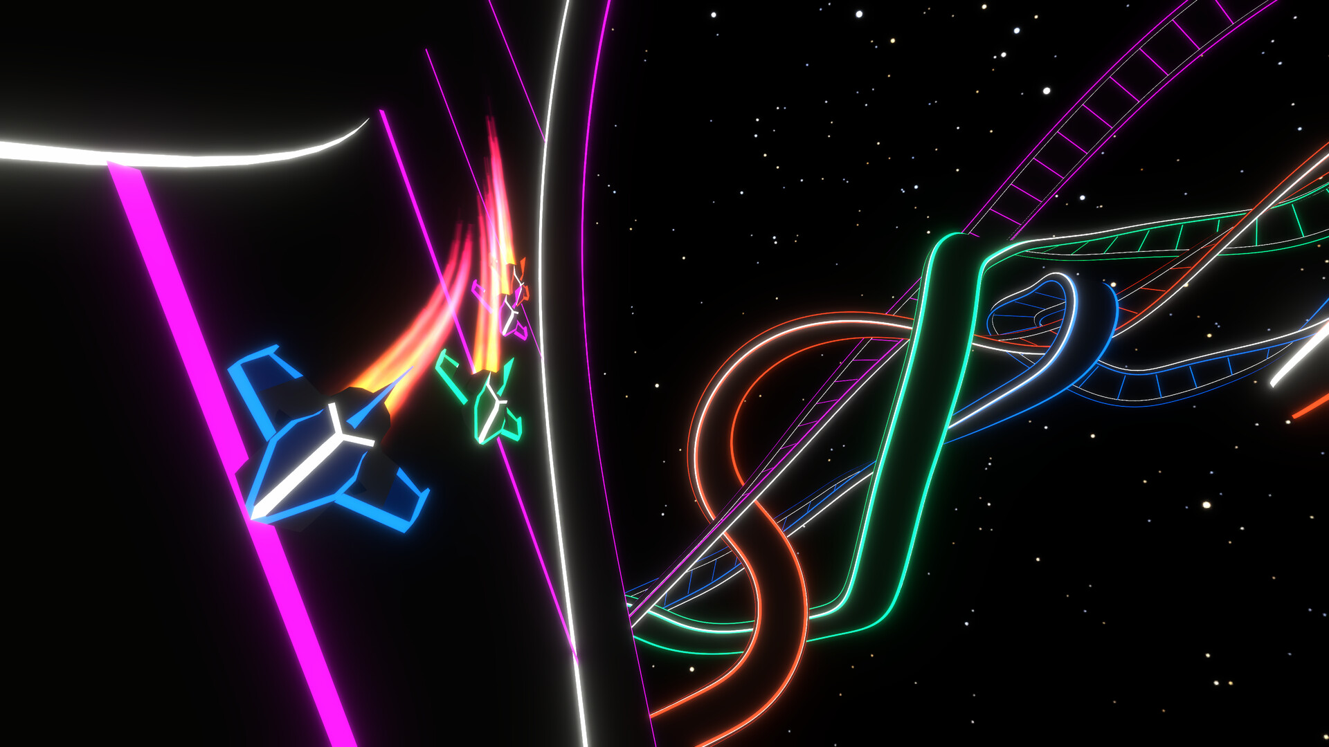 You fly through the checkpoints as fast as you can. Use full-use of your flight controls in 3D-Space to build a track through all the checkpoints as fast as possible. But be careful, crashes will slow you down and if you hit your own track - it's game over.