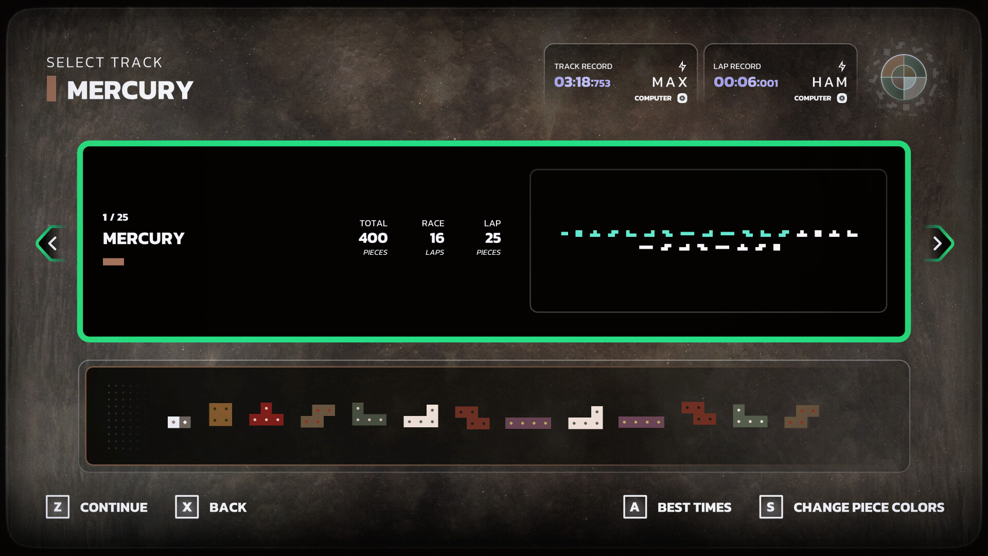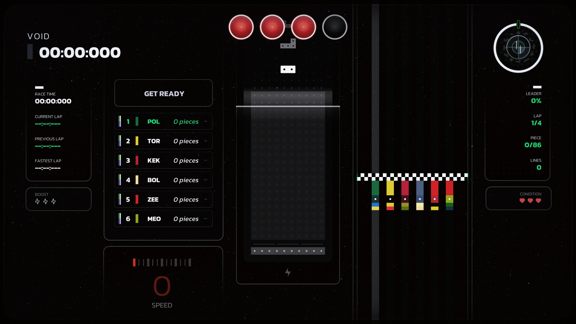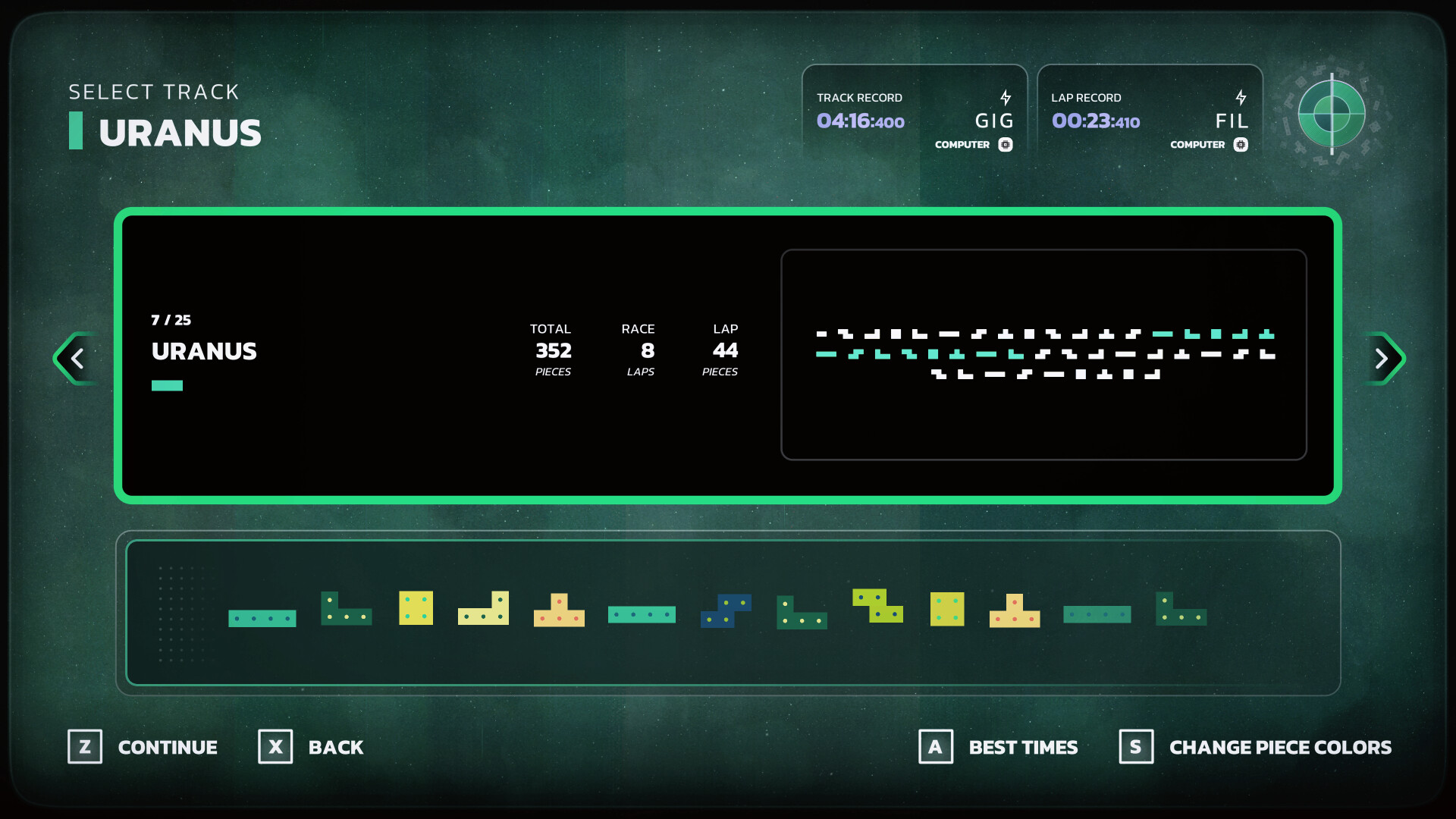 Drop Racing is a block-based game with a racing mindset: the winner is whoever lands all the pieces on the track first.