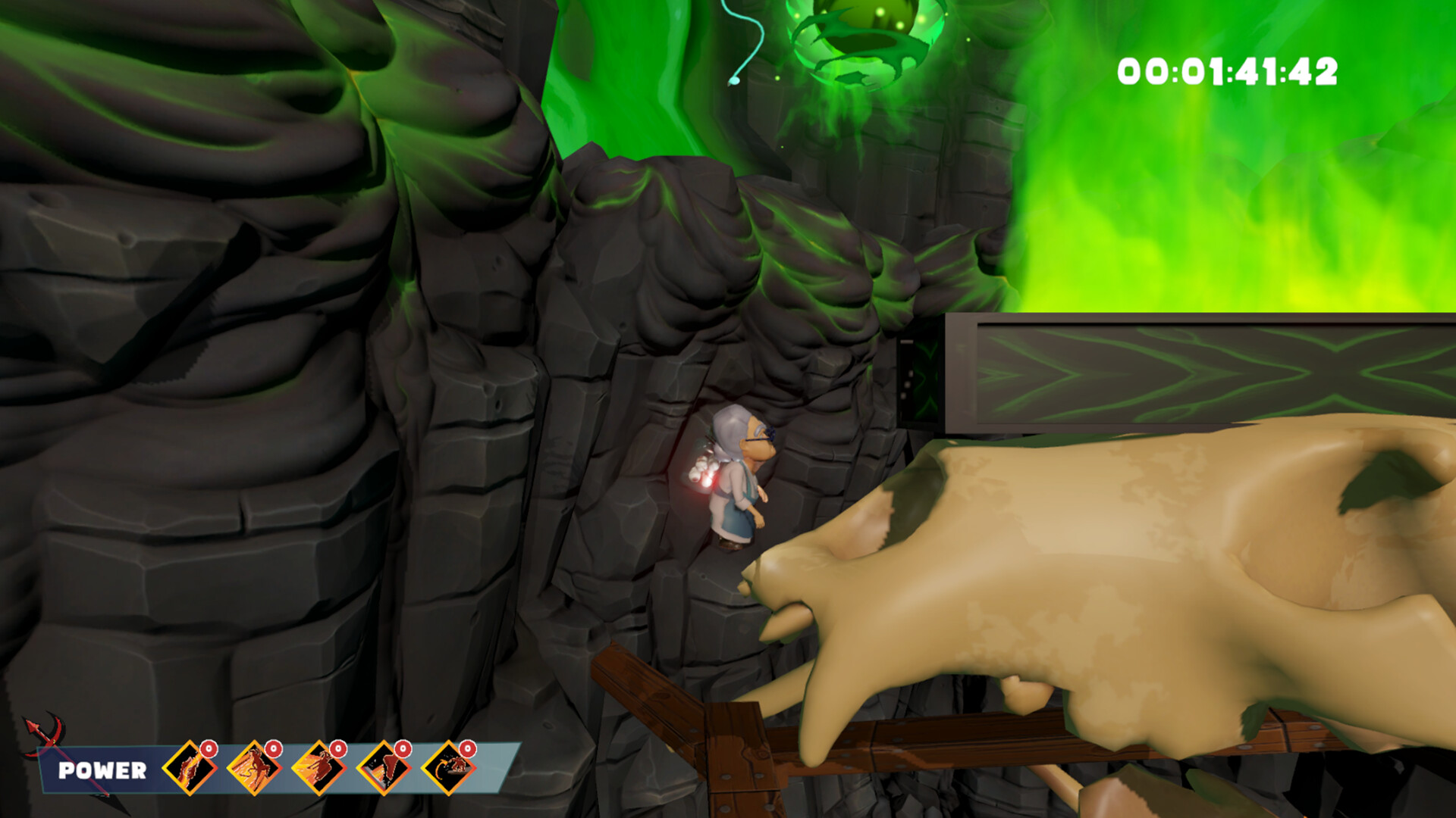 Our heroine isn't just any old lady. With her $*&% character, she seizes diabolical power. Her new trump card? An infernal grappling hook to navigate through flames and the abyss!