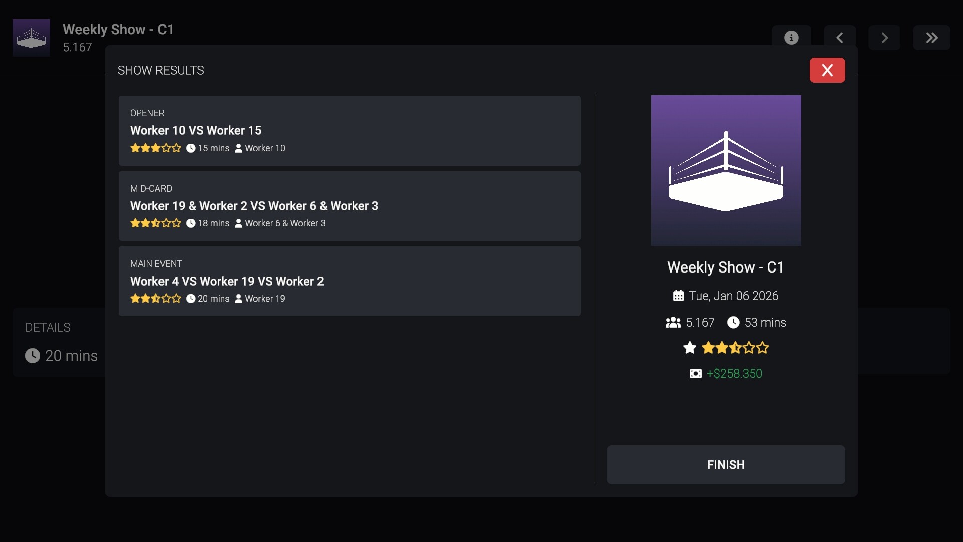 Create and simulate wrestling shows with a simple, clean UI interface
