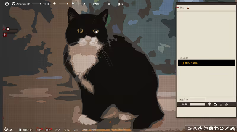 You can chat with friends and use dice-roll commands in chat window. Private Chat is also supported.