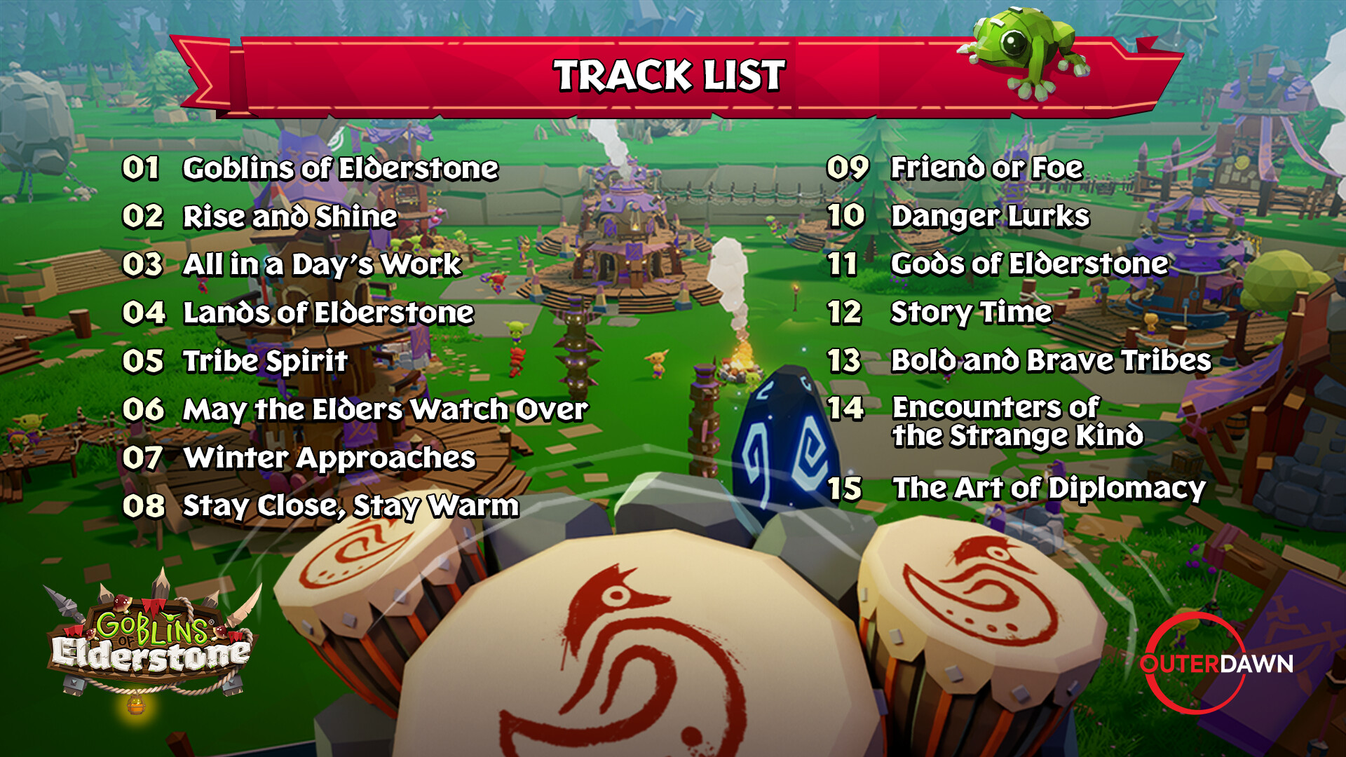 Take a musical journey into the world of Elderstone, from the perspective of the Goblins. Experience the calm and relaxing sounds of the seasons, the upbeat movements of the working tribe, the ethereal whispers of the gods, and the various encounters a Goblin will ultimately run into.