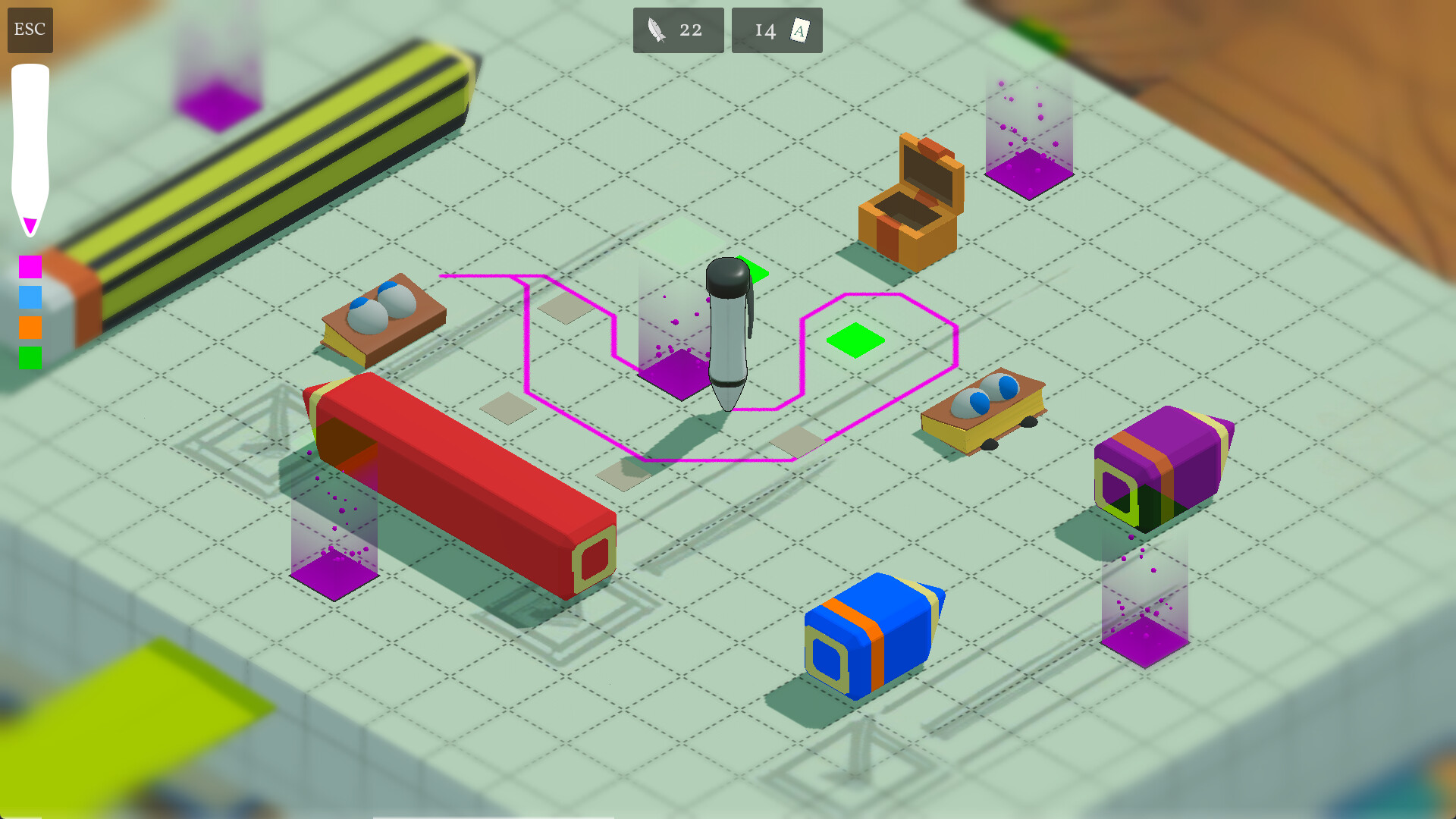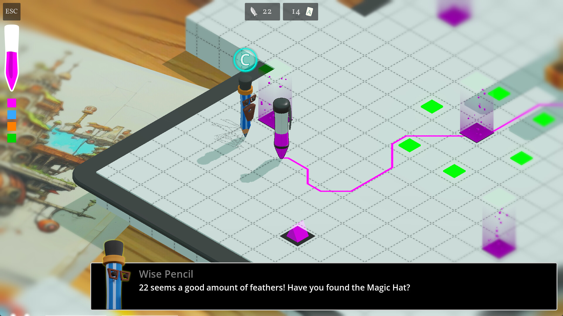 Pena moves likes no one, but as any other pen, he's filled with ink. Your moves as Pena are limited to how much ink you have, and you're soon running out of it, you must find the next charger, otherwise you're back to previous stage.