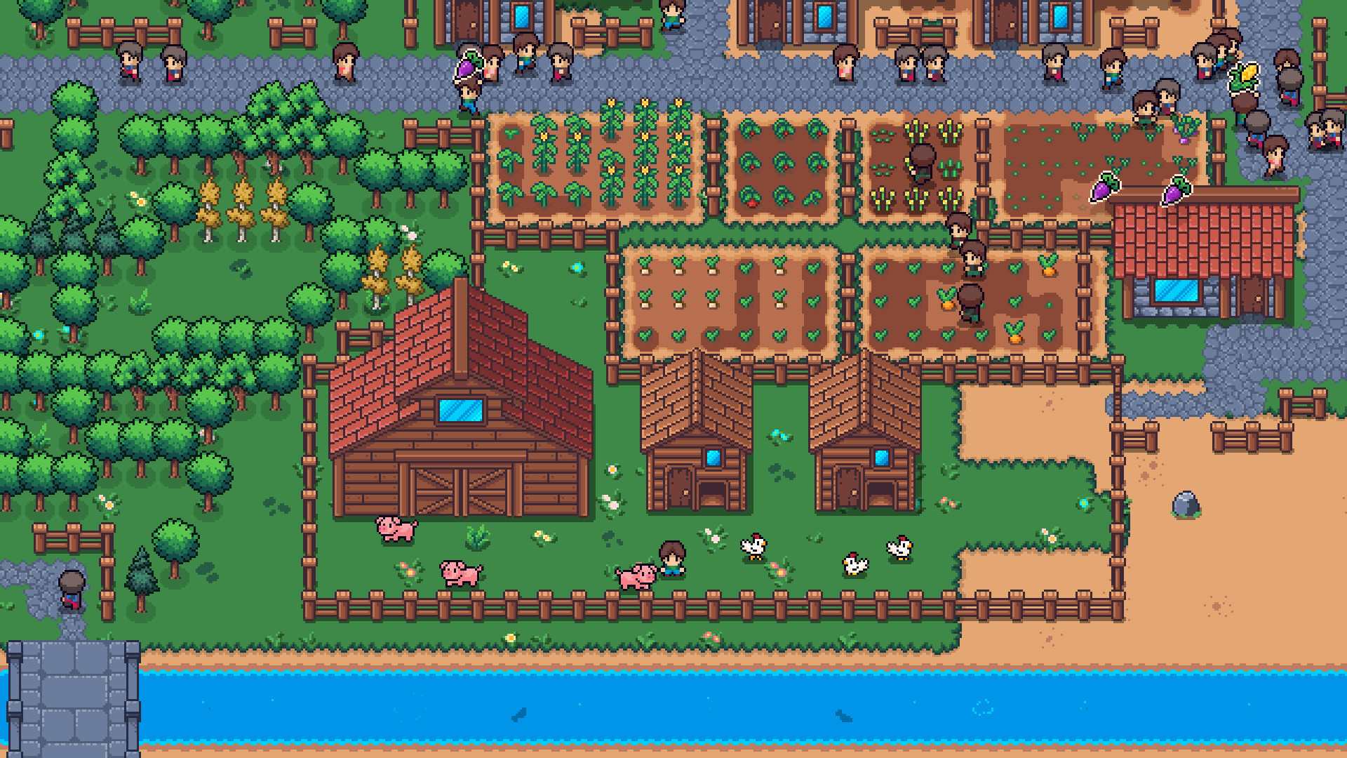 MR FARMBOY is a cute farming automation game. Plant, grow, harvest, raise animals, hire workers, gather, craft, automate, and build a beautiful farm for villagers to visit.
