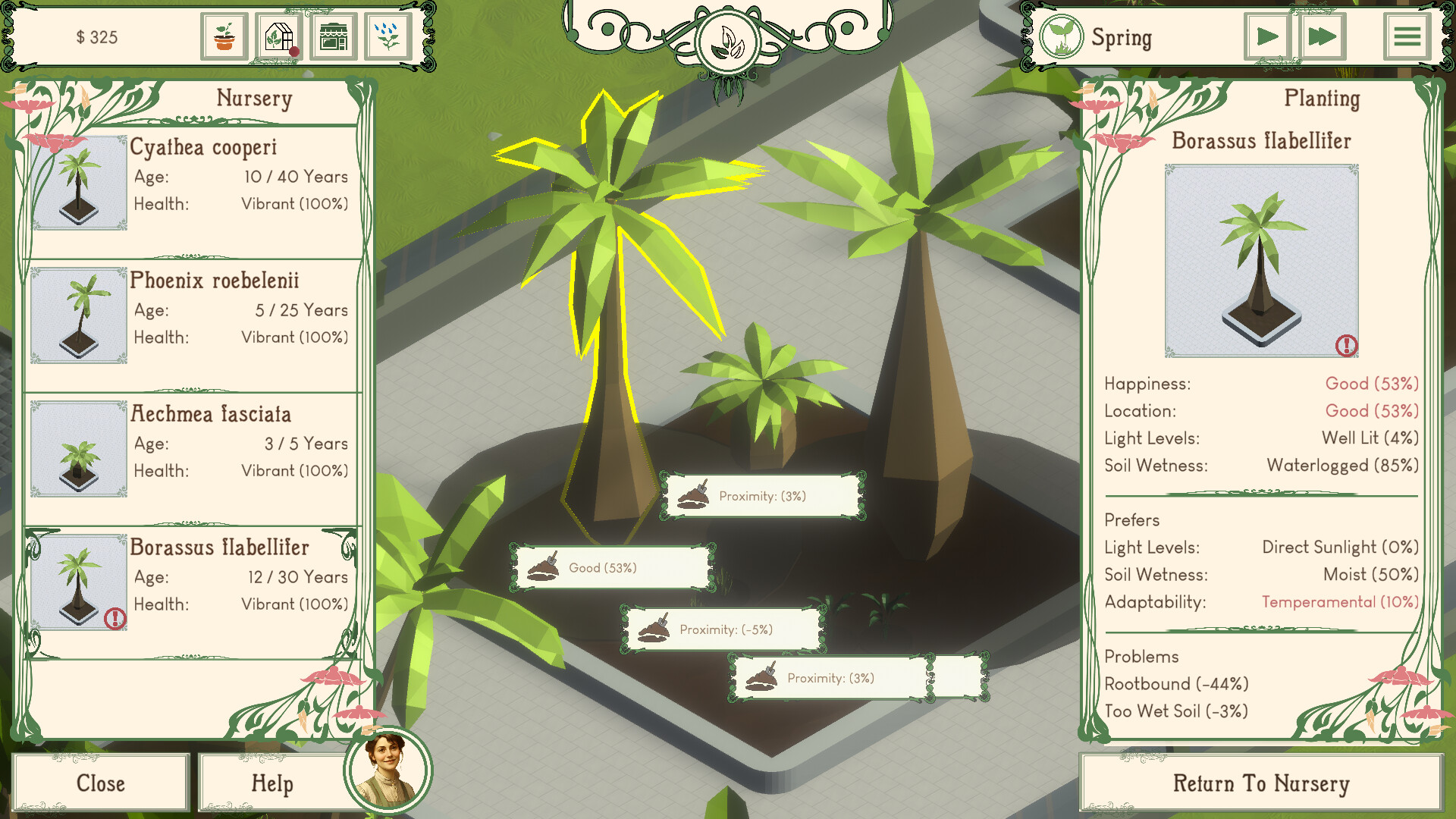 As the head gardener of the tropical greenhouse in a botanical garden, you are tasked with designing, planting and maintaining a climate-controlled indoor garden to showcase tropical plants from around the world. Design and build artificial beds to contain soil or other growth media for different groups of plants. Select plants that compliment each other, arrange where to plant them in your garden and avoid any plant combinations that compete with each other. Source plants from around the world to add to your garden. Grow them from seed or buy mature specimens from outside growers. Keep your plants healthy by ensuring they get the right amount of light, shade and water.